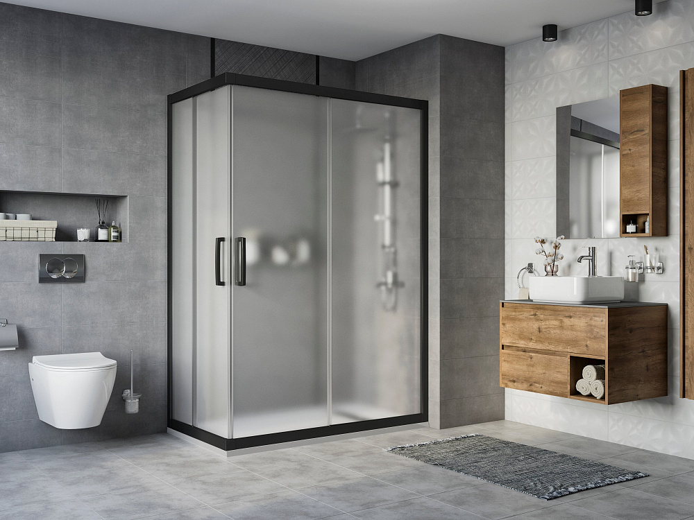 Душевой уголок STWORKI Карлстад 140x80 см профиль черный матовый, стекло матовое