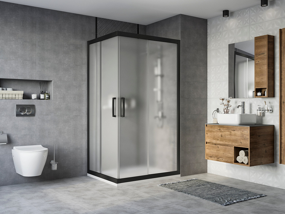 Душевой уголок STWORKI Карлстад 110x90 см профиль черный матовый, стекло матовое