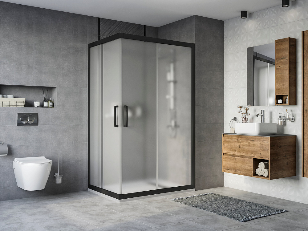 Душевой уголок STWORKI Карлстад 120x90 см профиль черный матовый, стекло матовое