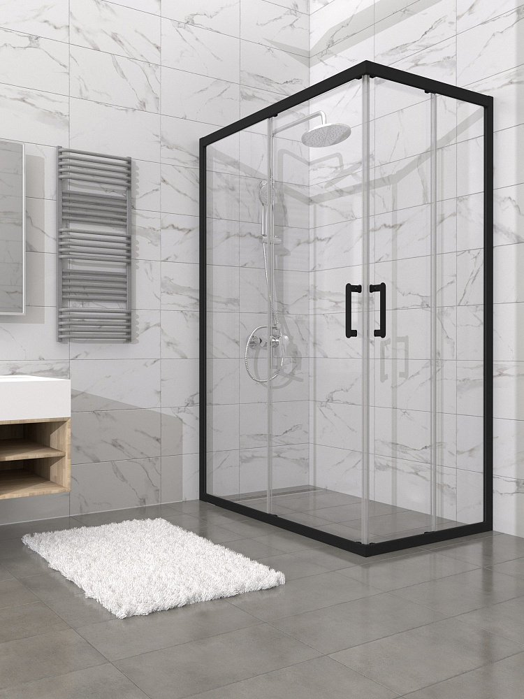 Душевой уголок STWORKI Орхус 120x80 см, профиль матовый черный, стекло прозрачное