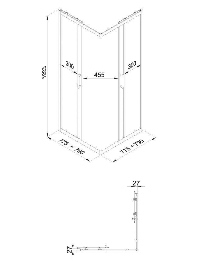 Душевой уголок STWORKI Орхус 80x80 см, профиль хром глянец, стекло прозрачное