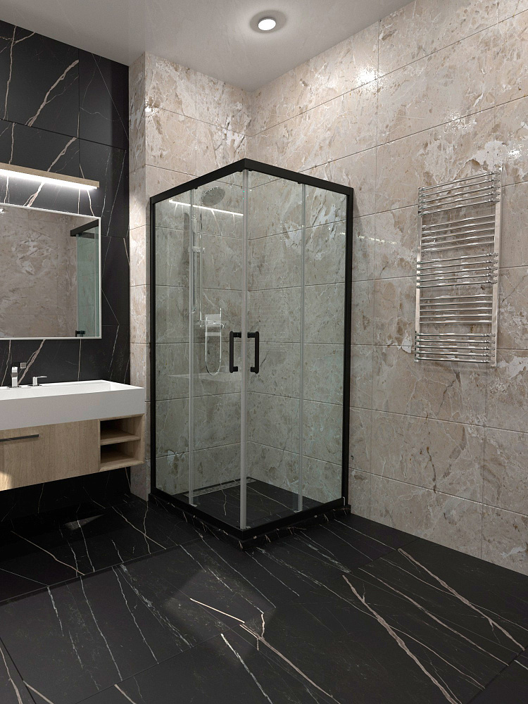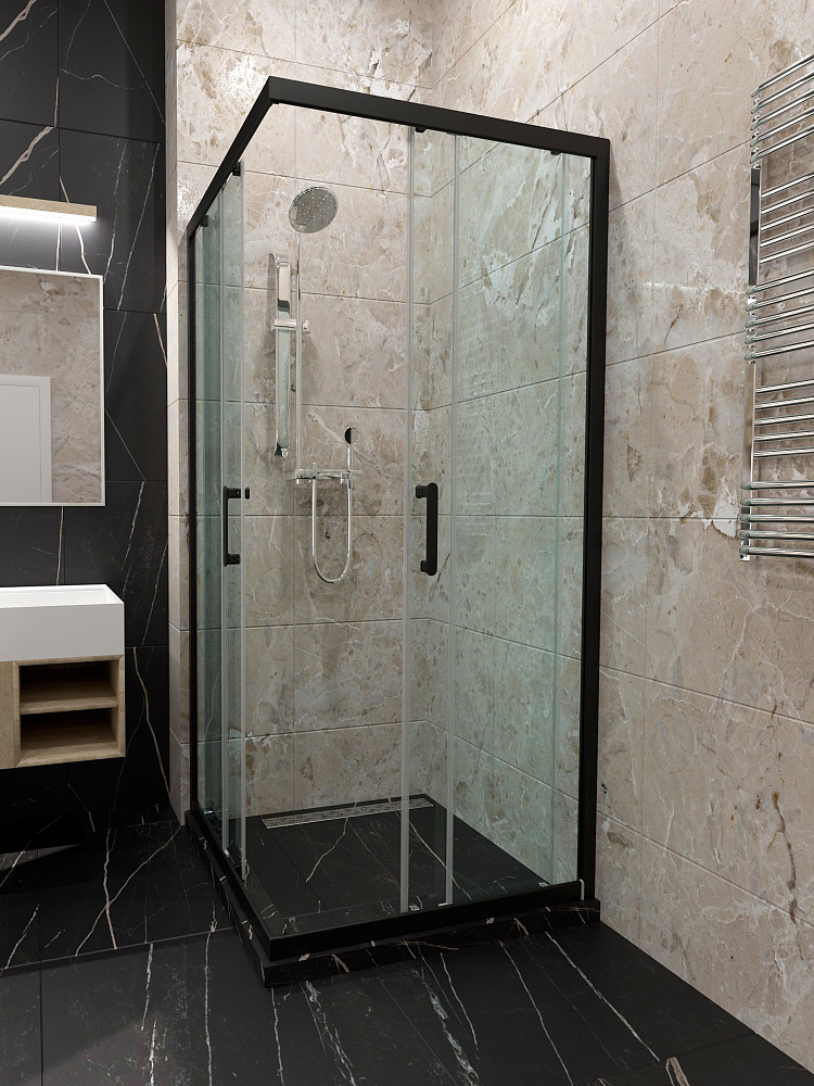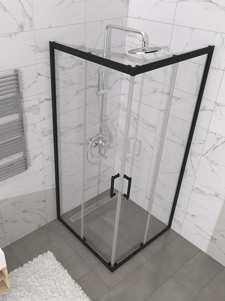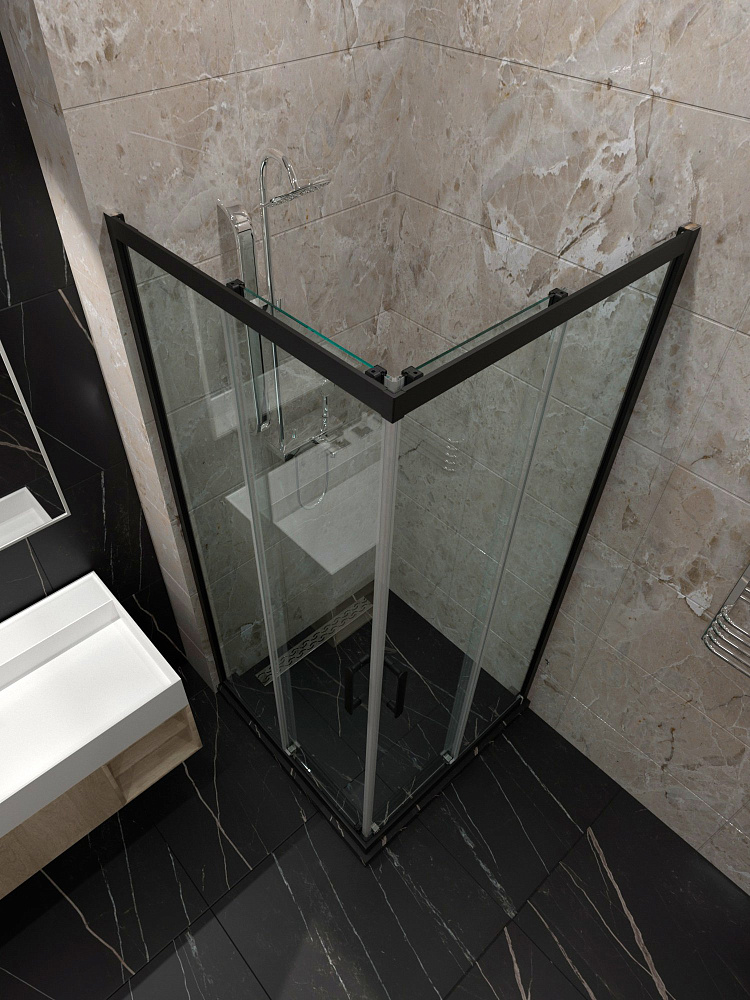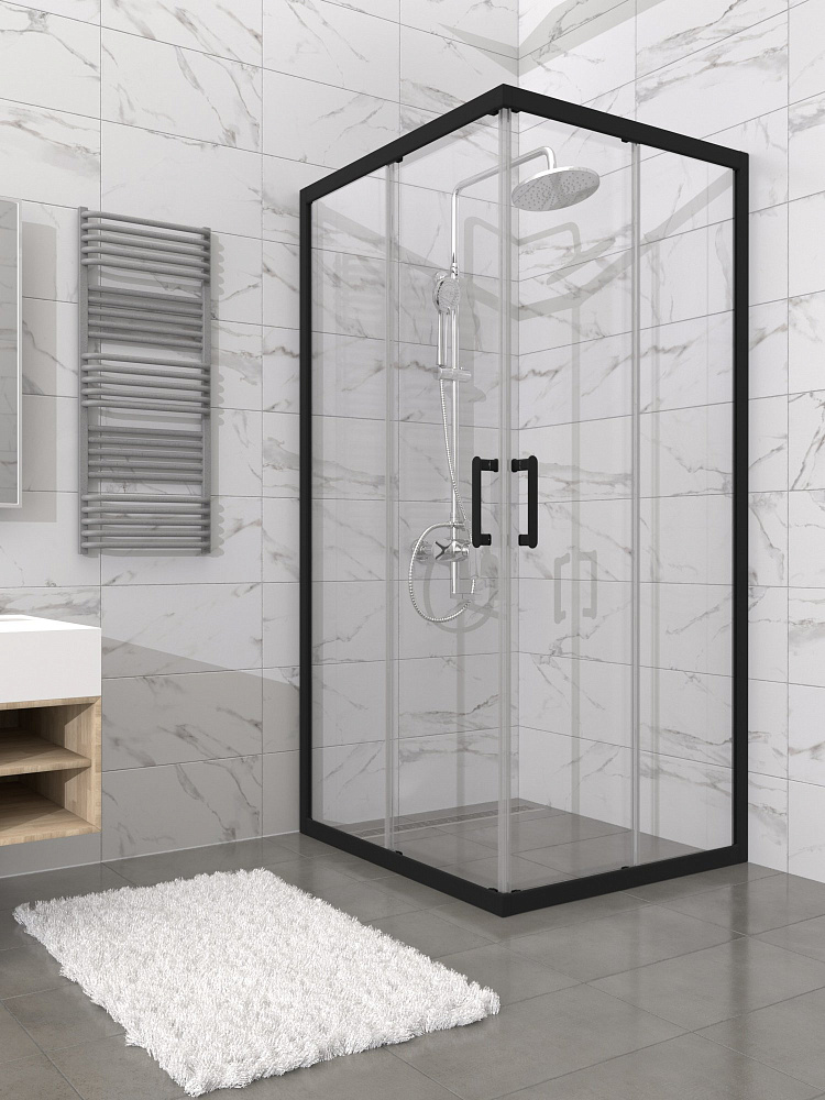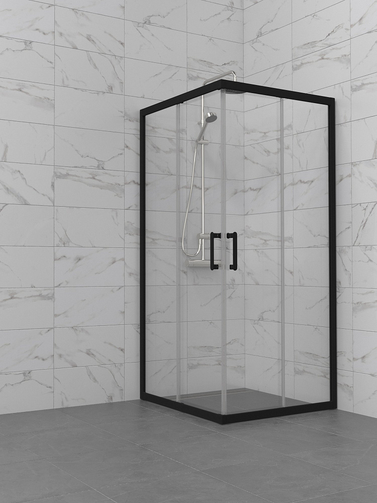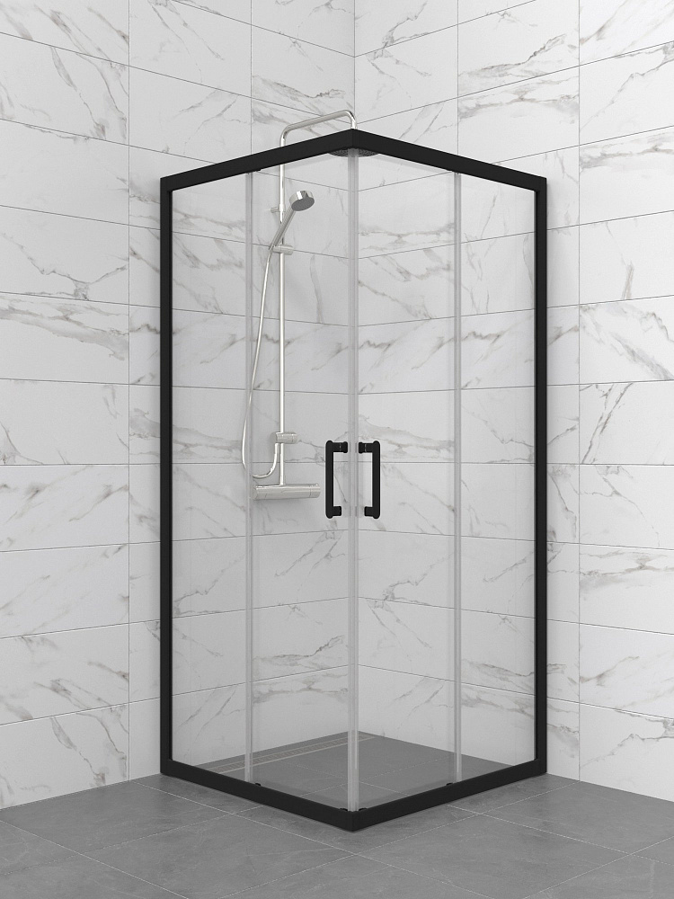 Душевой уголок STWORKI Орхус 80x80 см, профиль матовый черный, стекло прозрачное