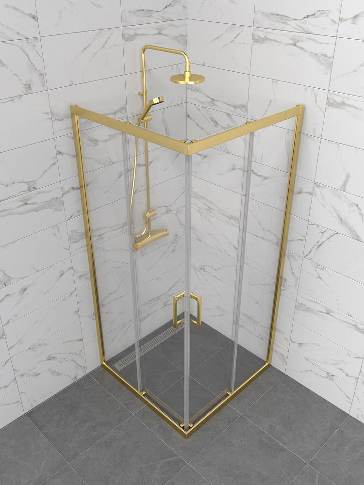 Душевой уголок STWORKI Орхус 90x90 см, профиль золото, стекло прозрачное