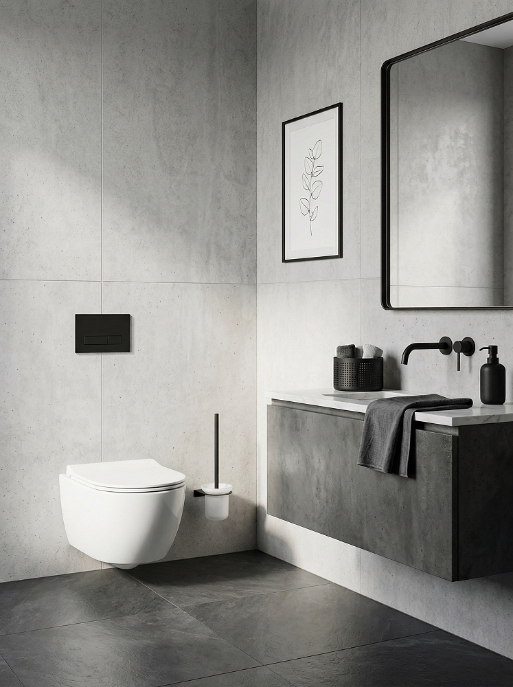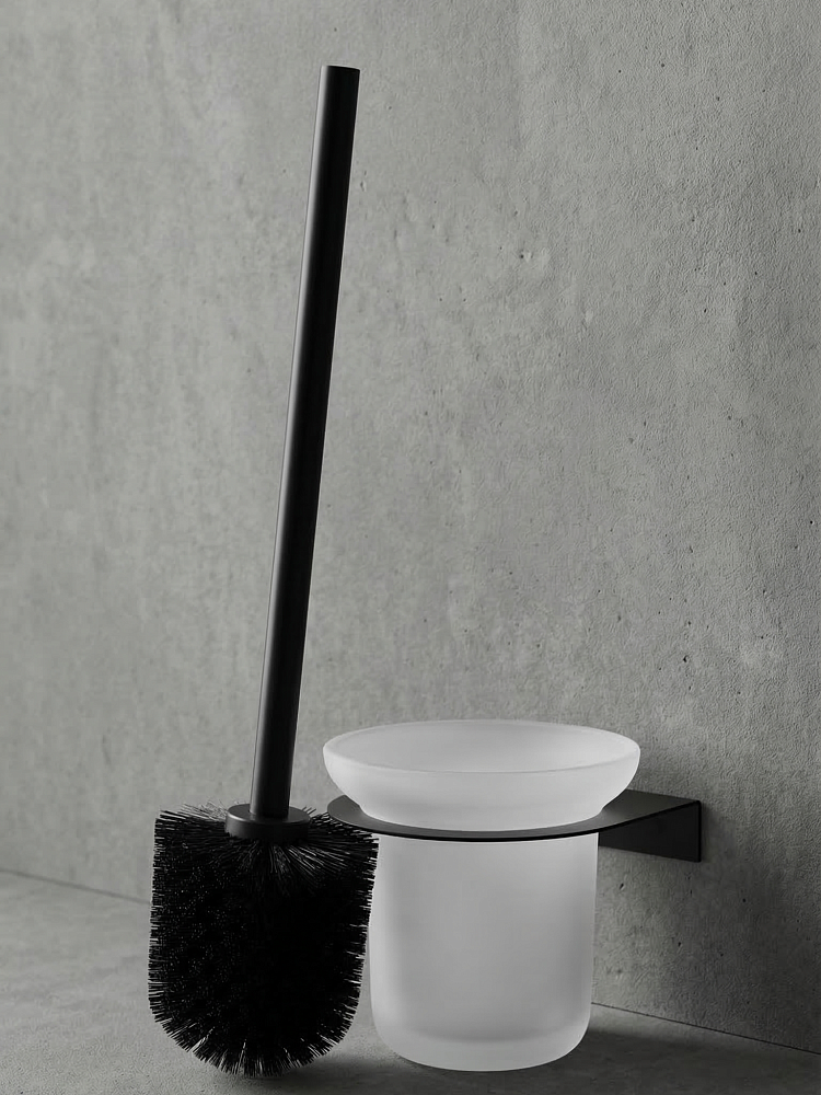 Ершик для унитаза STWORKI Дублин S41390BK настенный, матовый черный, с подставкой и держателем