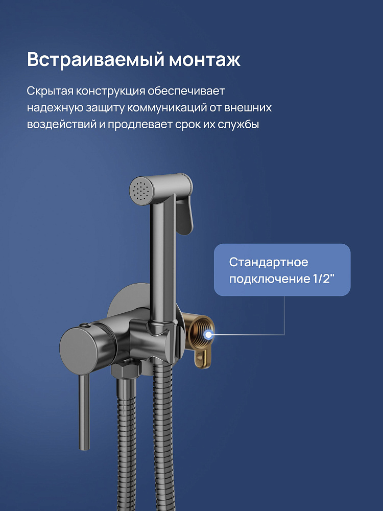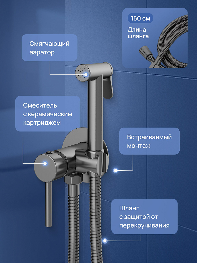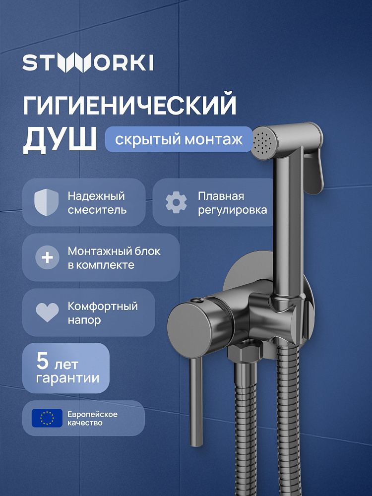 Гигиенический душ STWORKI Эстерсунд S31150GB со смесителем, С ВНУТРЕННЕЙ ЧАСТЬЮ, вороненая сталь