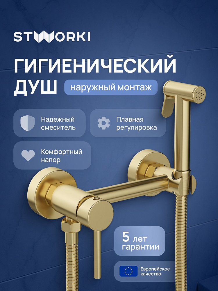 Гигиенический душ STWORKI Эстерсунд S31155GM со смесителем, матовое золото