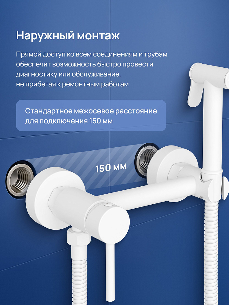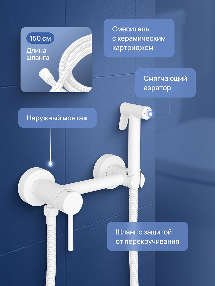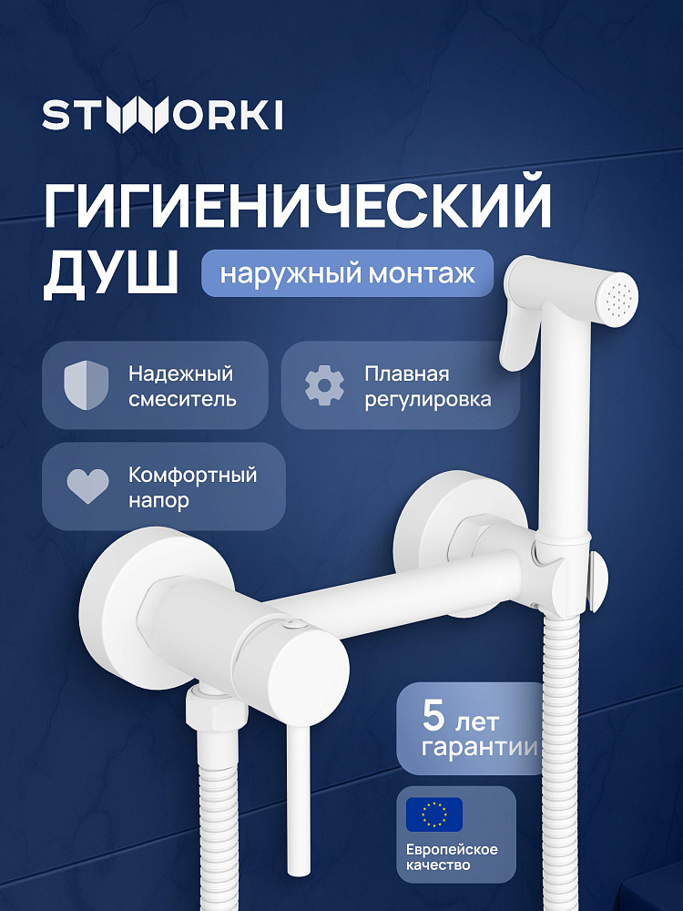 Гигиенический душ STWORKI Эстерсунд S31155WH со смесителем, матовый белый