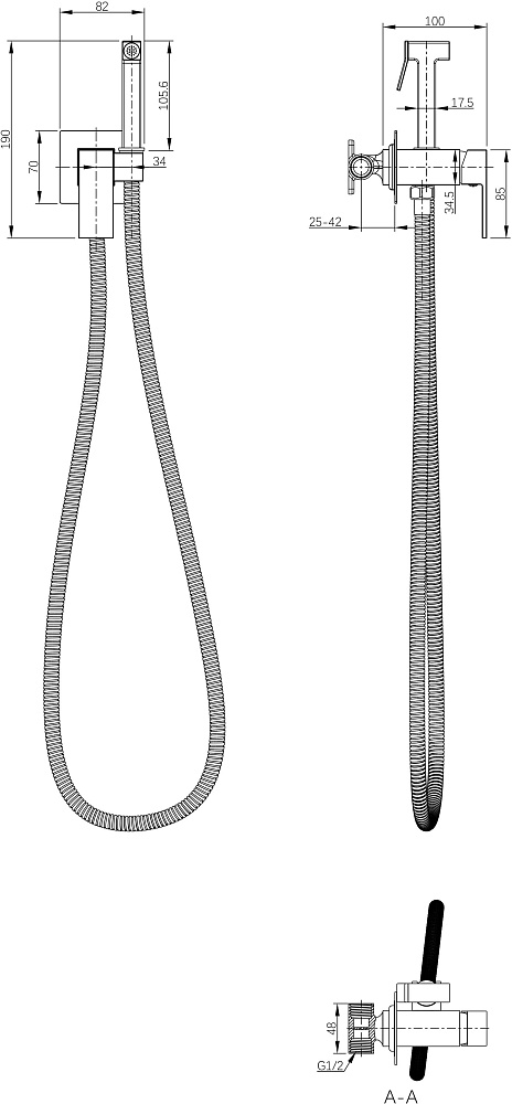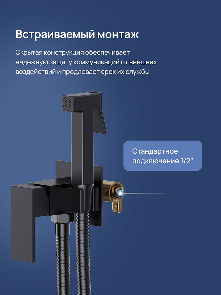 Гигиенический душ STWORKI Эстерсунд S35150BK со смесителем, С ВНУТРЕННЕЙ ЧАСТЬЮ, матовый черный