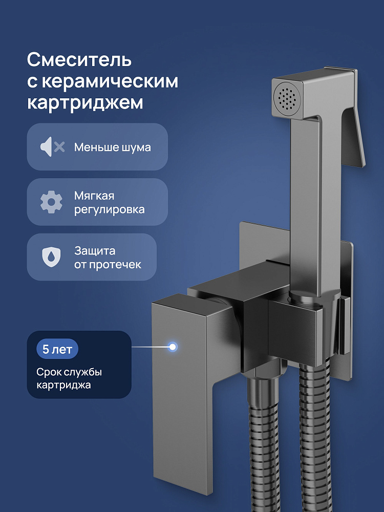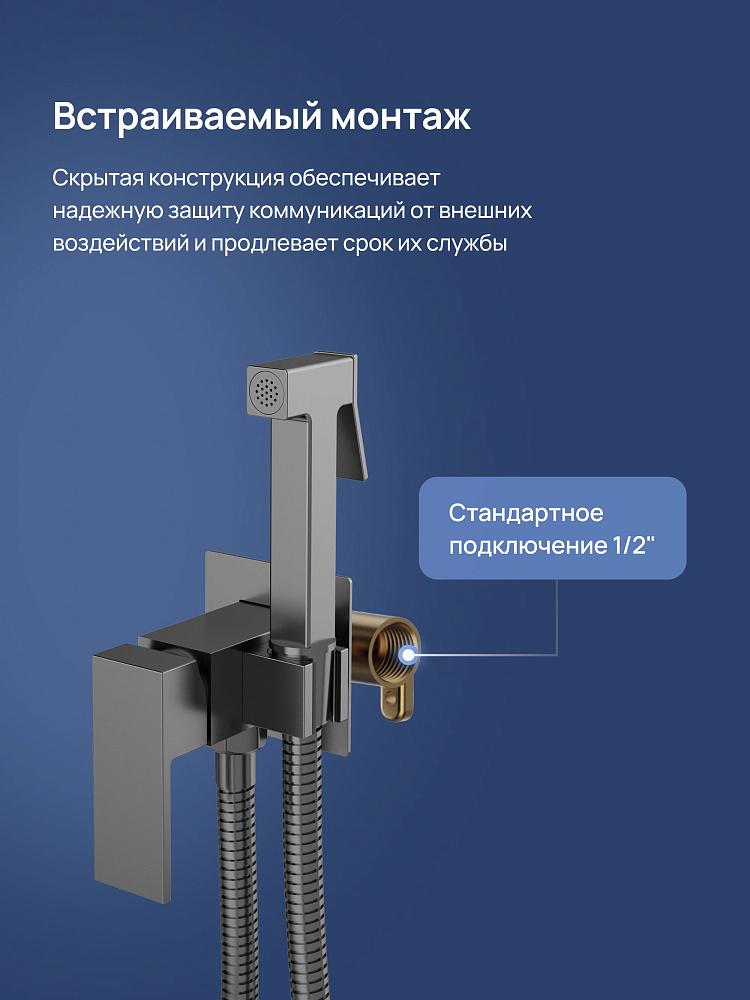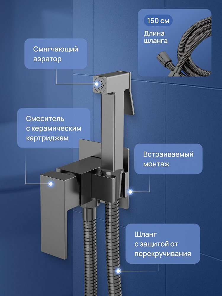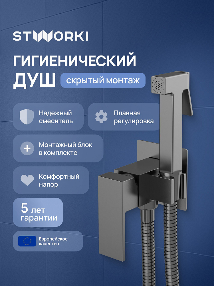 Гигиенический душ STWORKI Эстерсунд S35150GB со смесителем, С ВНУТРЕННЕЙ ЧАСТЬЮ, вороненая сталь