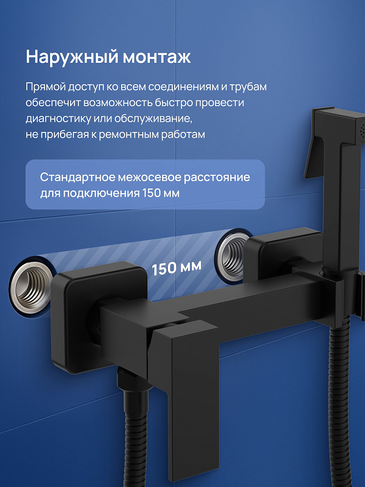Гигиенический душ STWORKI Эстерсунд S35155BK со смесителем, матовый черный