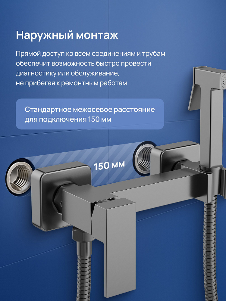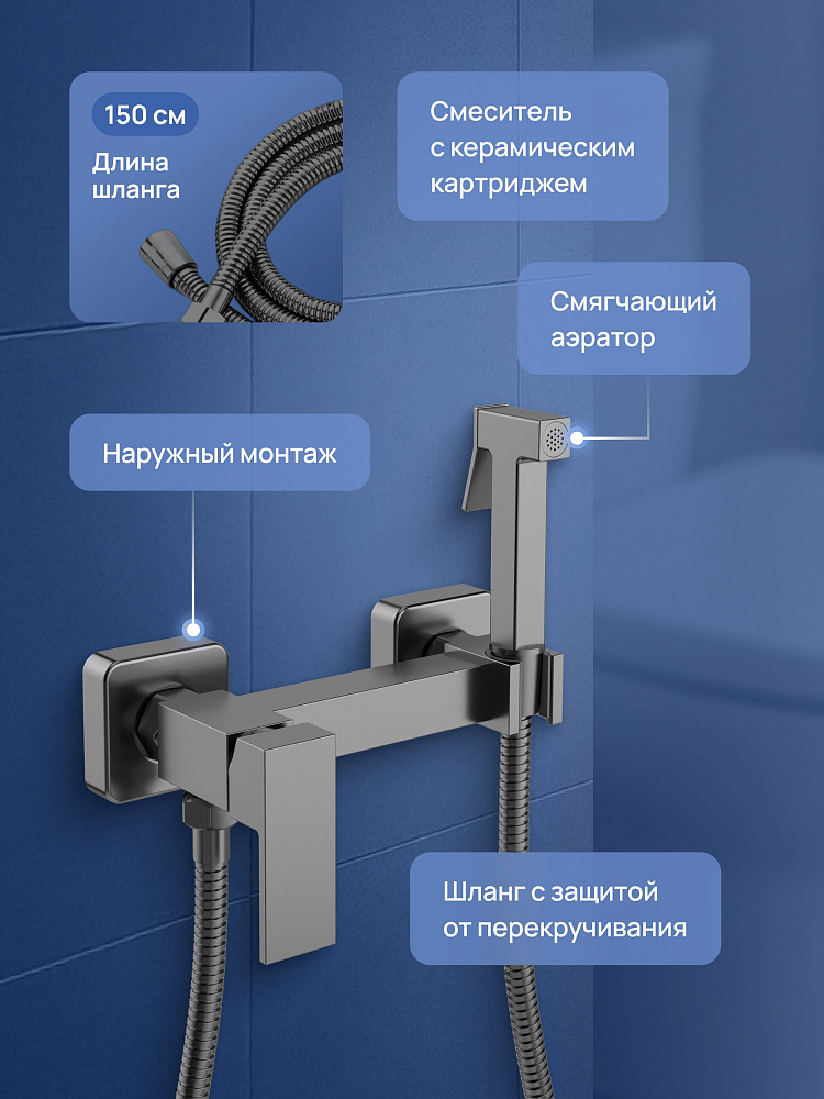 Гигиенический душ STWORKI Эстерсунд S35155GB со смесителем, вороненая сталь