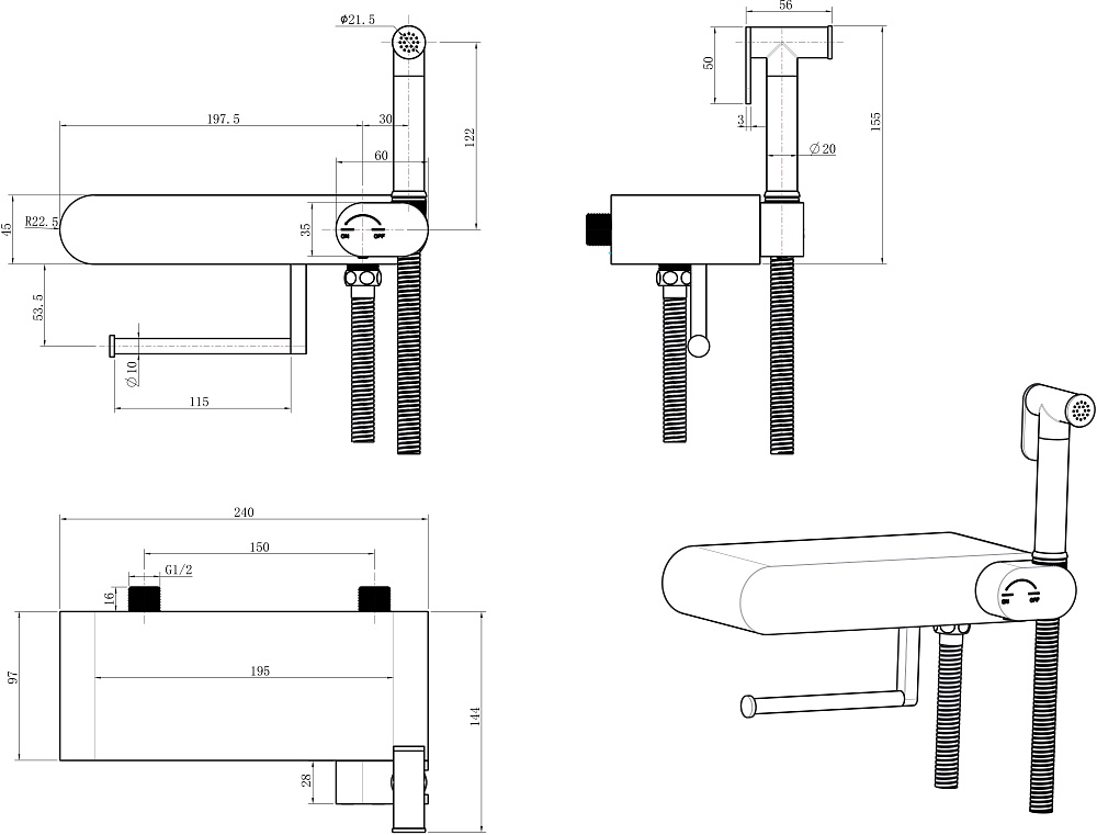Гигиенический душ STWORKI Вестерос S26155CR со смесителем, хром
