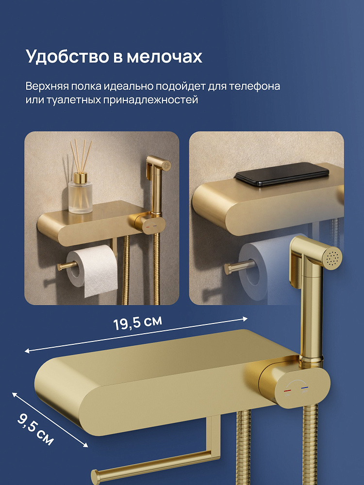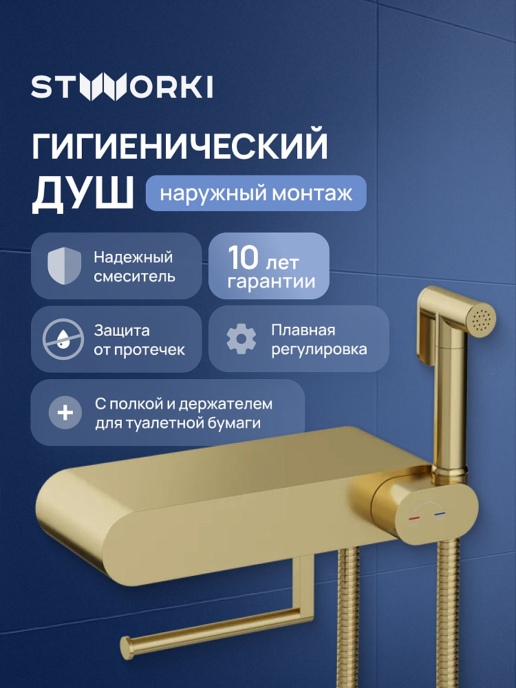 Гигиенический душ STWORKI Вестерос S26155GM со смесителем, матовое золото