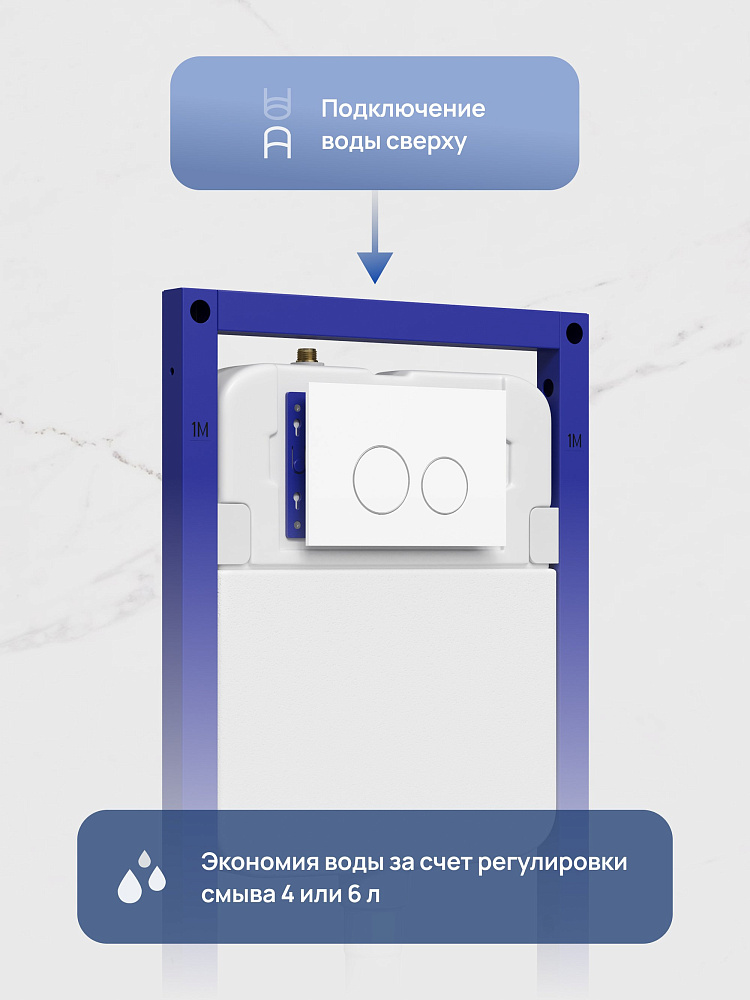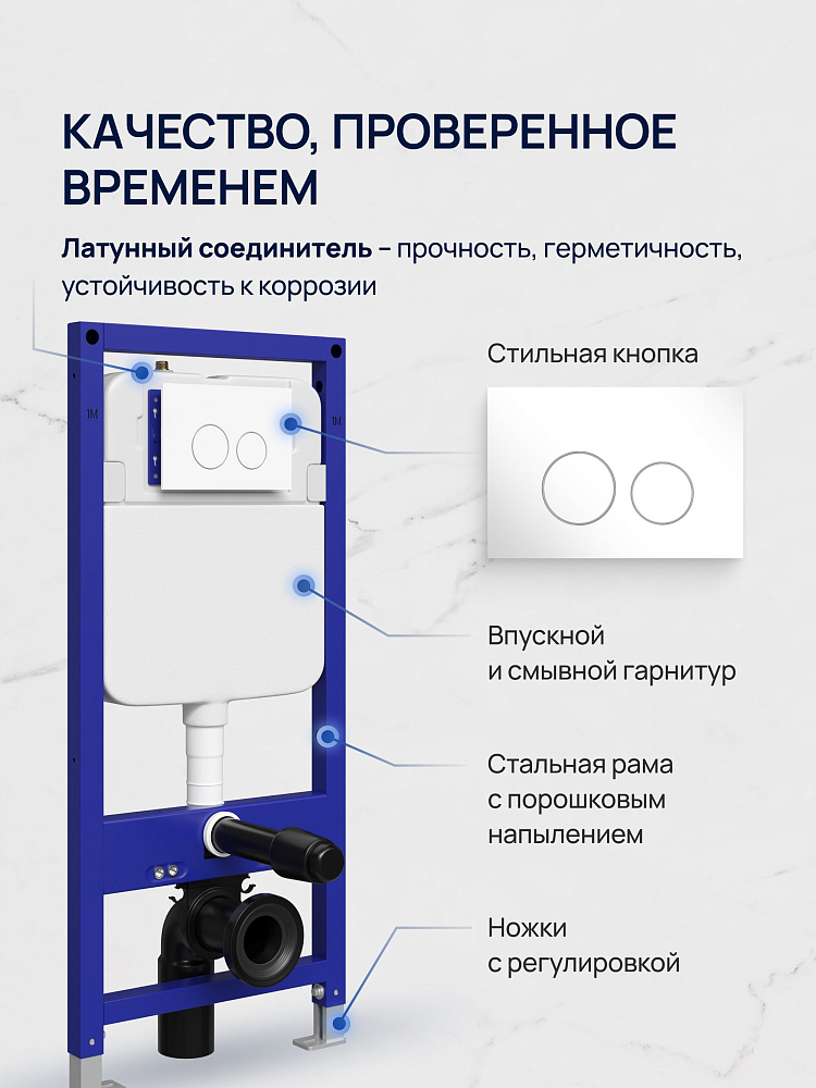 Инсталляция с кнопкой STWORKI Хельсинки S33500WH цвет глянцевый белый, крепление к полу и стене, с регулировкой по высоте, с шумоизоляцией