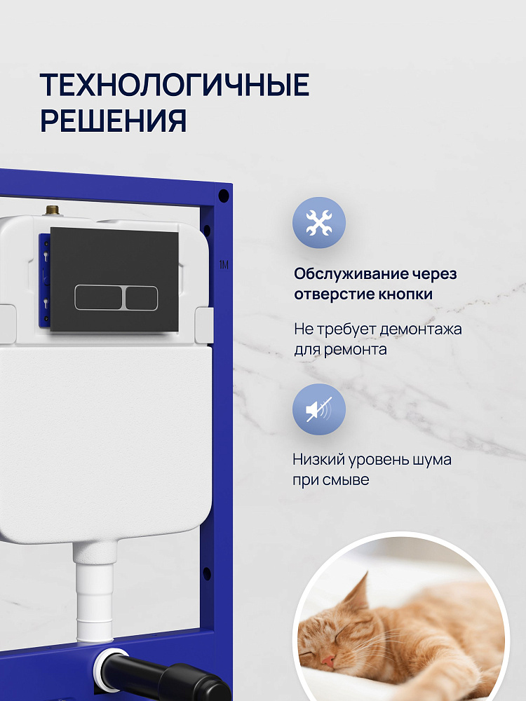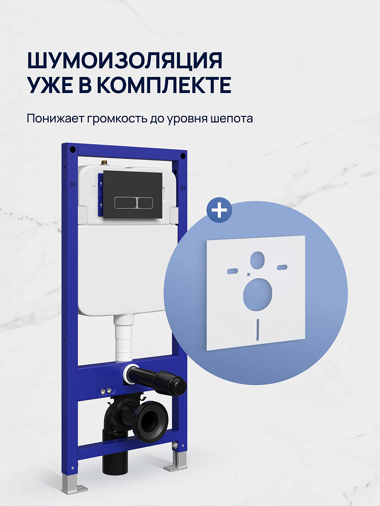 Инсталляция с кнопкой STWORKI Кронборг S28500BK цвет матовый черный, крепление к полу и стене, с регулировкой по высоте, с шумоизоляцией