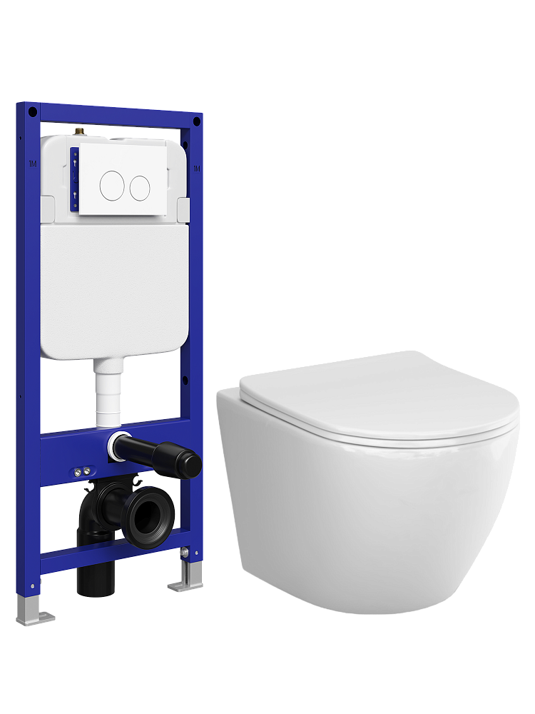 Комплект 5 в 1: Инсталляция STWORKI Хельсинки S33500WH + Унитаз подвесной AM.PM Like C801900SC + Сиденье с микролифтом + Комплект шумоизоляции + Кнопка глянцевая белая