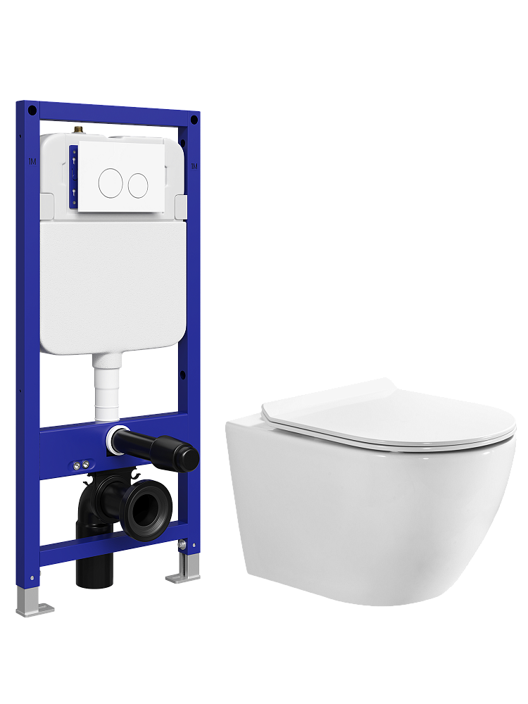 Комплект 5 в 1: Инсталляция STWORKI Хельсинки S33500WH + Унитаз подвесной BOND Овал F12-10 + Сиденье с микролифтом + Комплект шумоизоляции + Кнопка глянцевая белая