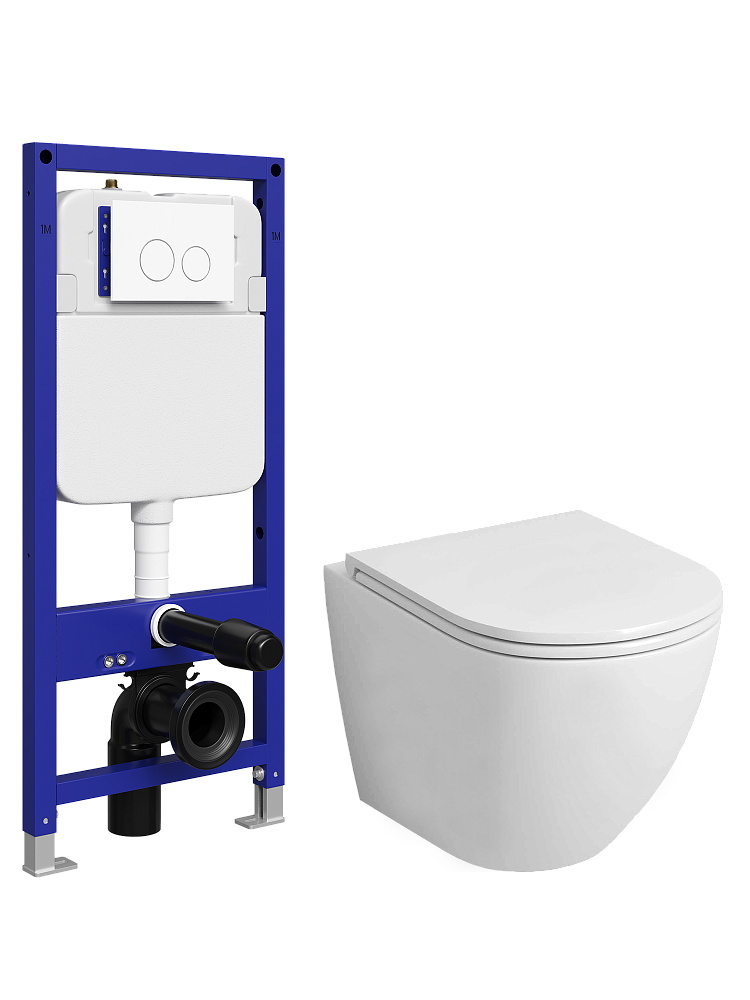 Комплект 5 в 1: Инсталляция STWORKI Хельсинки S33500WH + Унитаз подвесной Grossman Торнадо GR-4455SQ + Сиденье с микролифтом + Комплект шумоизоляции + Кнопка глянцевая белая