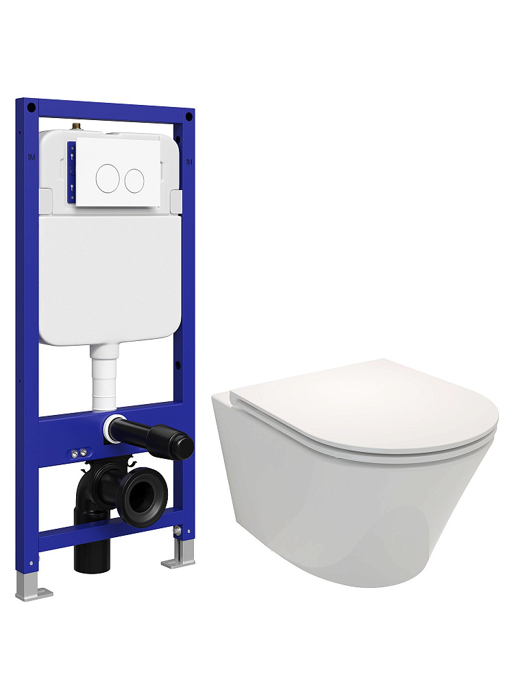 Комплект 5 в 1: Инсталляция STWORKI Хельсинки S33500WH + Унитаз подвесной Jacob Delafon Rodin+ EDY102-00 + Сиденье E23280-00 с микролифтом + Комплект шумоизоляции + Кнопка глянцевая белая