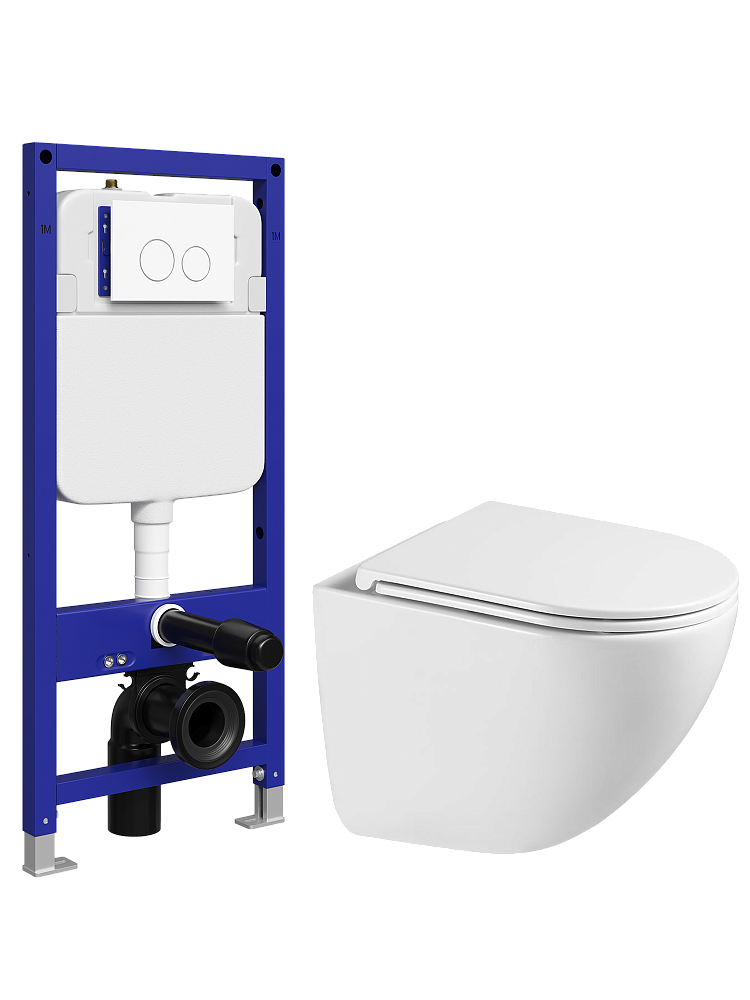 Комплект 5 в 1: Инсталляция STWORKI Хельсинки S33500WH + Унитаз подвесной Vincea Bien VT1-51T + Сиденье с микролифтом + Комплект шумоизоляции + Кнопка глянцевая белая