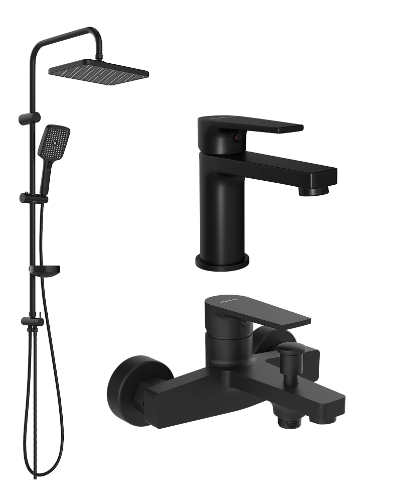 Комплект для ванной Смеситель STWORKI Берген S21010BK + Стойка Вестерос S26180BK + Смеситель S21100BK