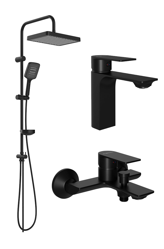 Комплект для ванной Смеситель STWORKI Гриндстед S29010BK, черный + Стойка Хадстен S17180BK, матовая черная + Смеситель S29100BK, матовый черный