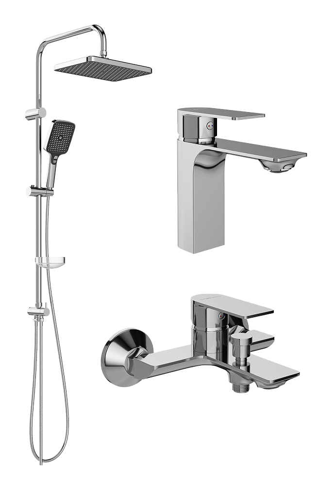 Комплект для ванной Смеситель STWORKI Гриндстед S29010CR хром + Стойка Вестерос S26180CR хром + Смеситель S29100CR хром