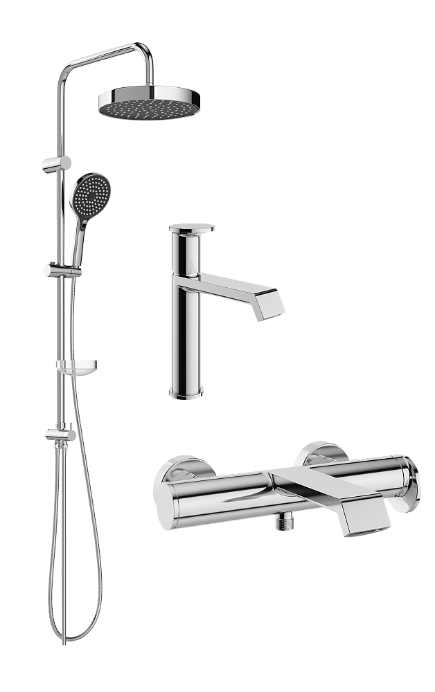 Комплект для ванной Смеситель STWORKI Лерум S04010CR хром + Стойка Хельсингборг S18180CR хром + Смеситель S04100CR хром