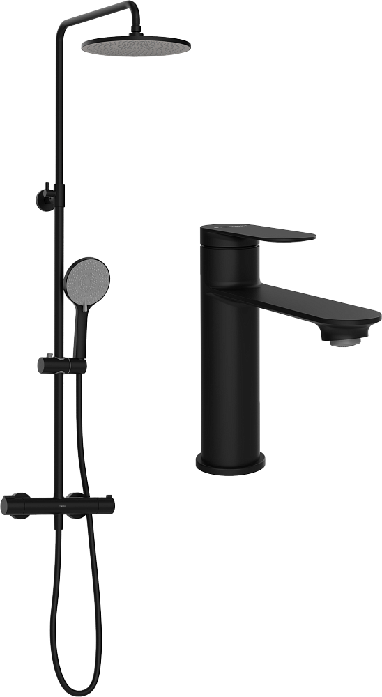 Комплект для ванной Смеситель STWORKI Сортланд S10010BK, матовый черный + Стойка S10160BK, матовый чёрный