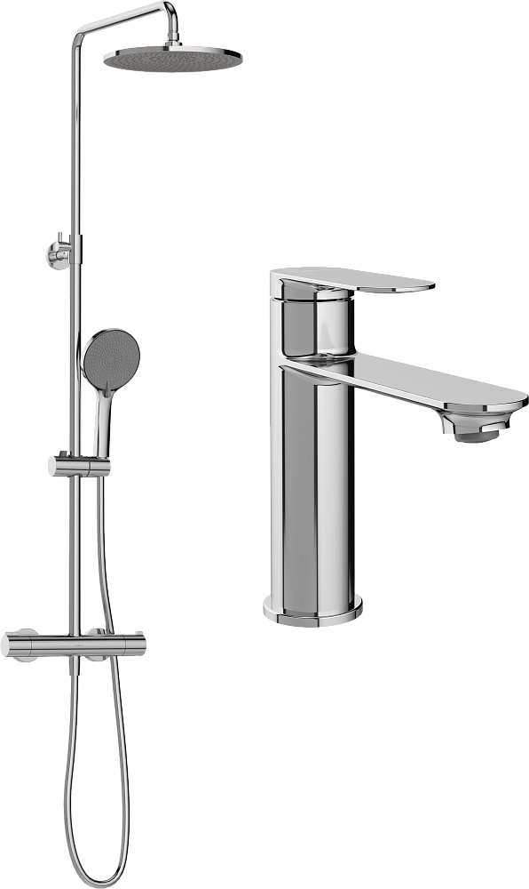 Комплект для ванной Смеситель STWORKI Сортланд S10010CR, хром + Стойка S10160CR, хром