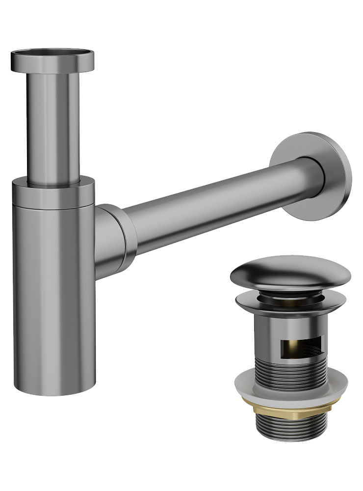 Комплект Донный клапан STWORKI SW-001GB вороненая сталь + Сифон SD-001GB бутылочный, вороненая сталь