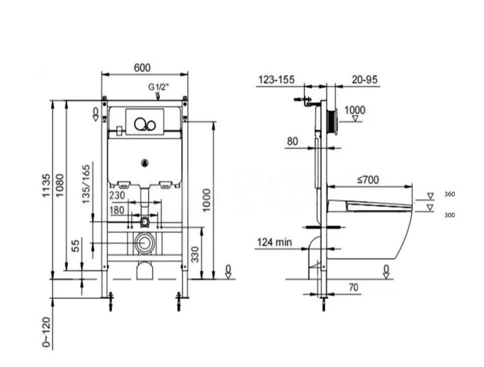 Комплект Умный унитаз STWORKI Левангер S07405WH безободковый, с биде, с микролифтом
