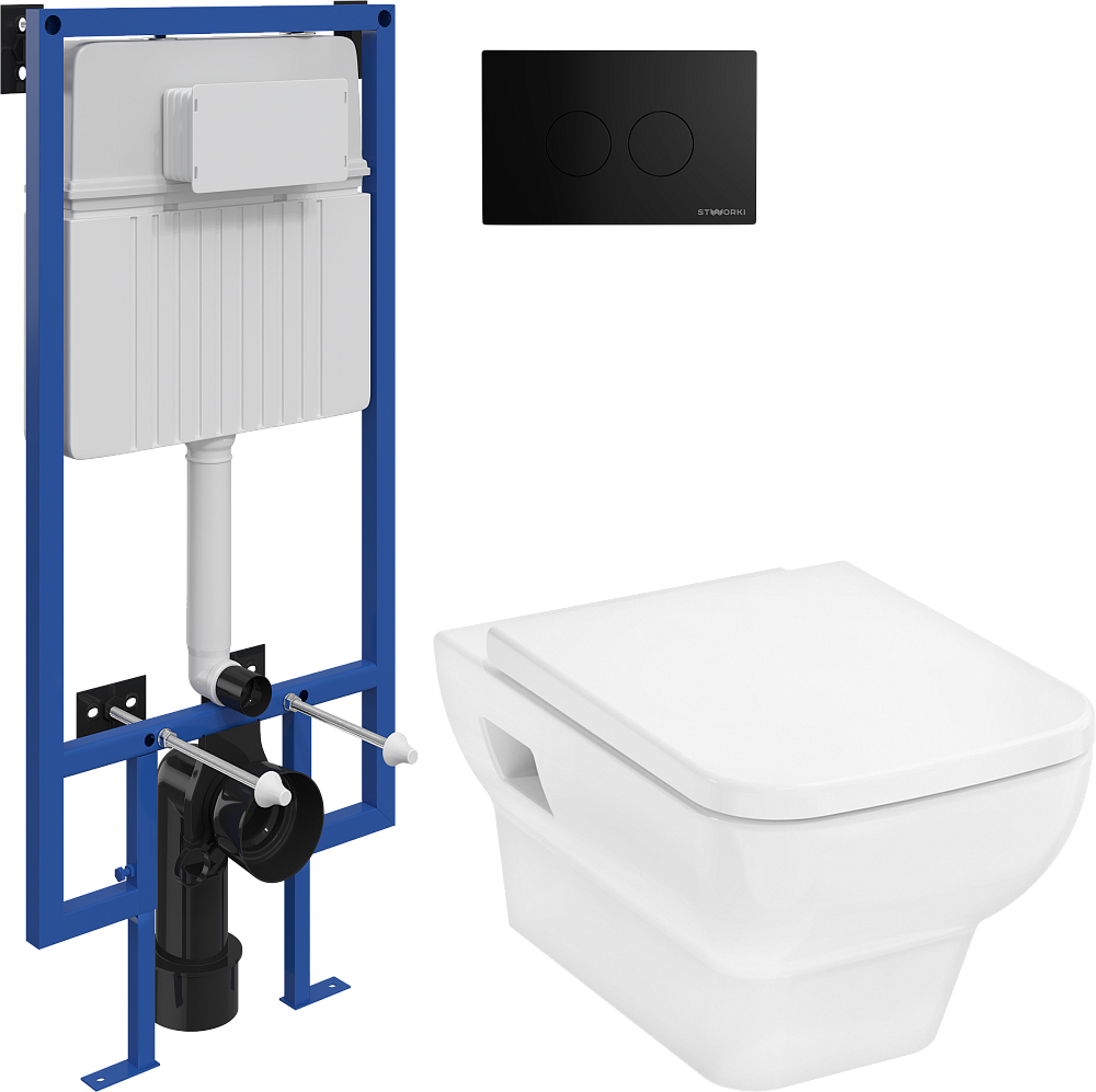 Комплект 3 в 1 Унитаз подвесной Hansgrohe CreekTide Q HGSET001 + Инсталляция STWORKI 510162 + Кнопка Хельсинки 500471 цвет матовый черный