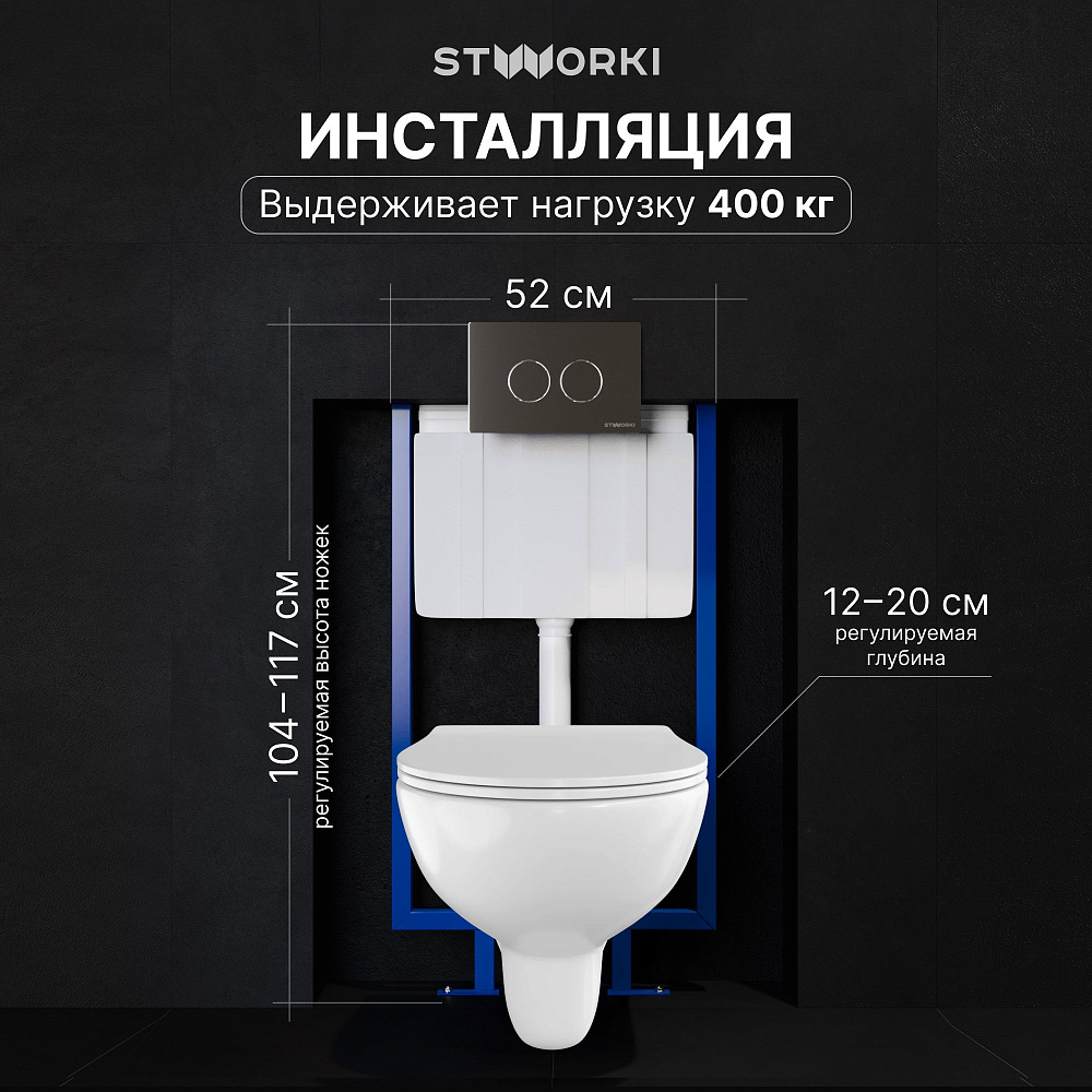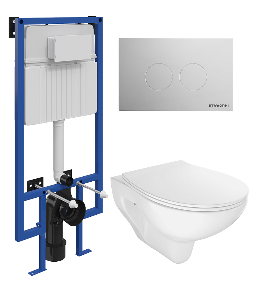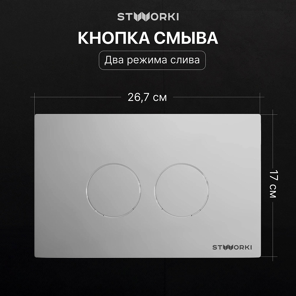 Комплект 4 в 1 Унитаз подвесной STWORKI Хедмарк 3510, безободковый + Сиденье Smart 0302, быстросъемное, с микролифтом + Инсталляция 510162 + Кнопка Хельсинки 500472 цвет глянцевый хром