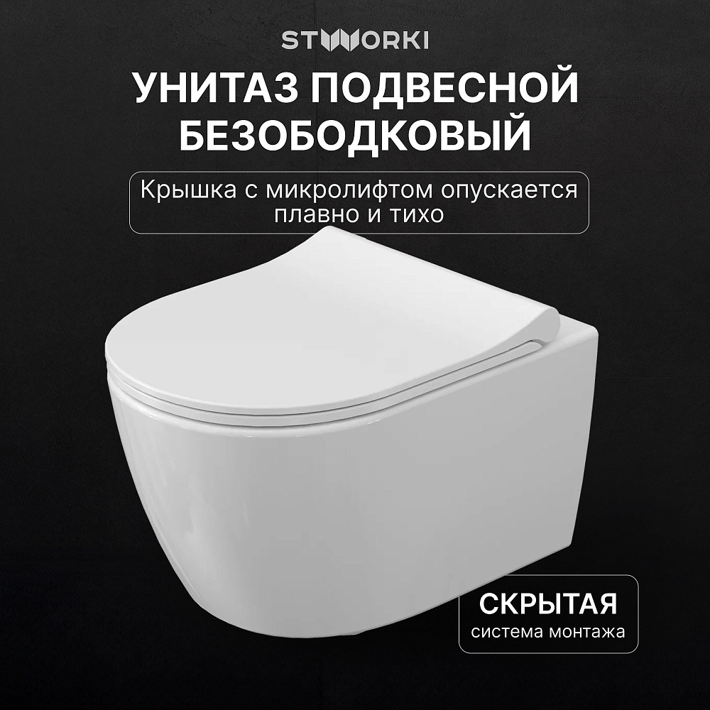 Комплект 4 в 1 Унитаз подвесной STWORKI Ларвик 5512 безободковый + Сиденье 530224 + Инсталляция 510162 + Кнопка 230858 цвет матовый черный