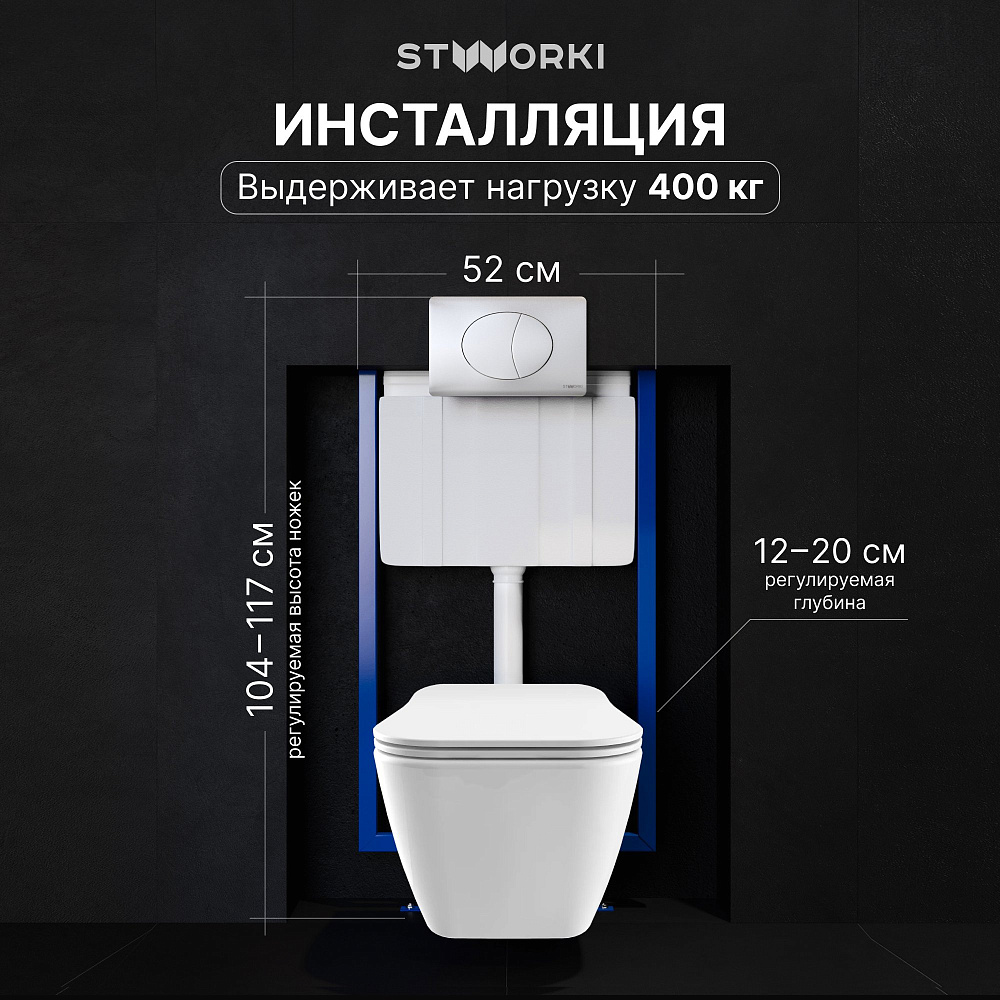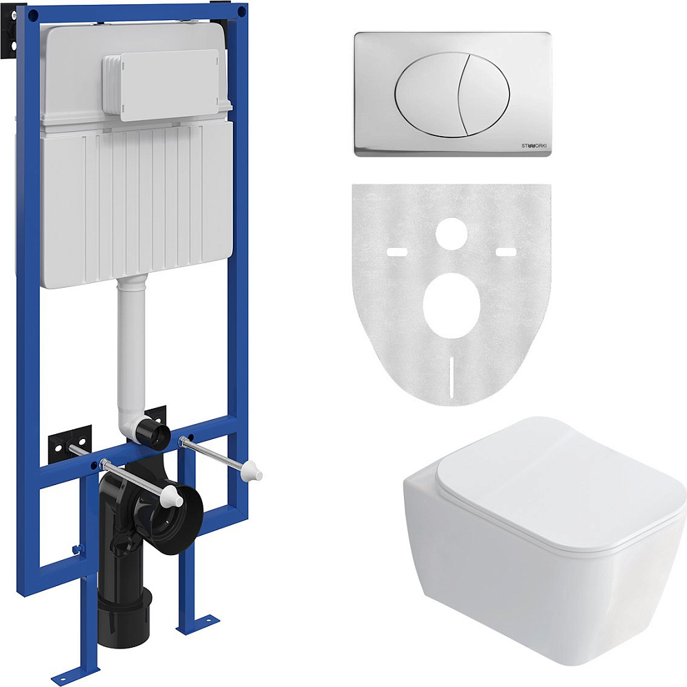 Комплект 3 в 1 Унитаз подвесной STWORKI Монтре SETK3204-2616 + Инсталляция 510162 + Кнопка 230823 цвет матовый хром