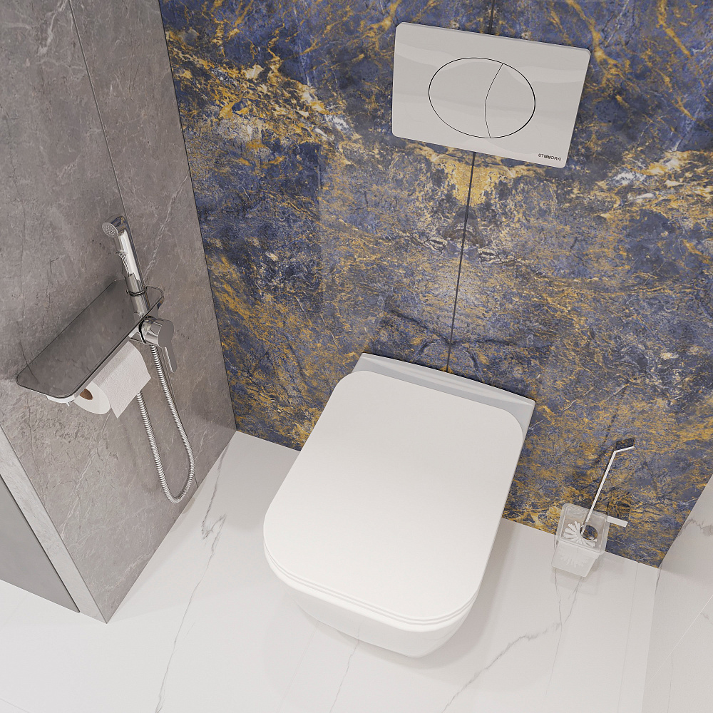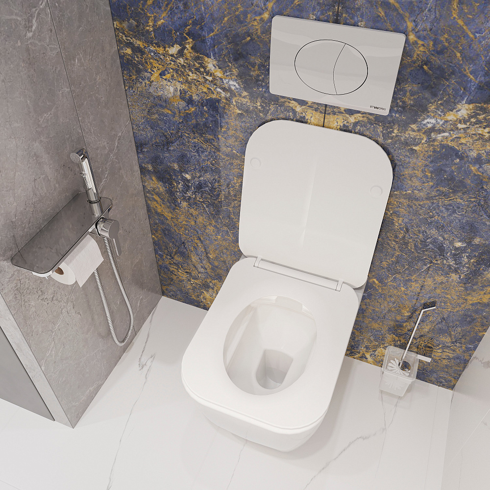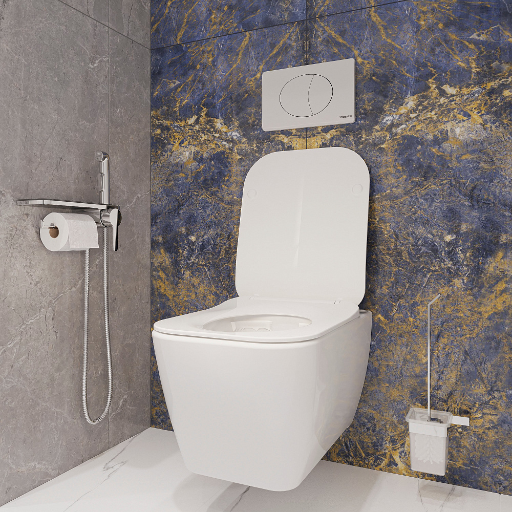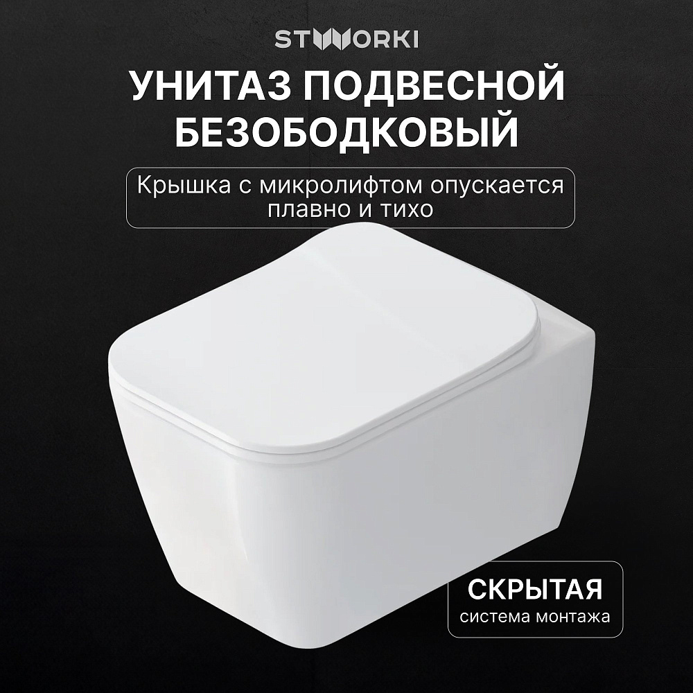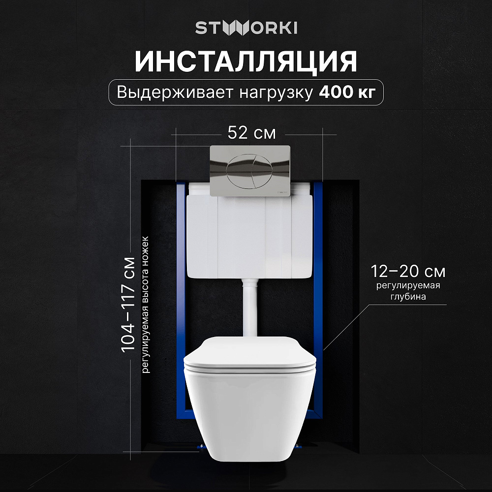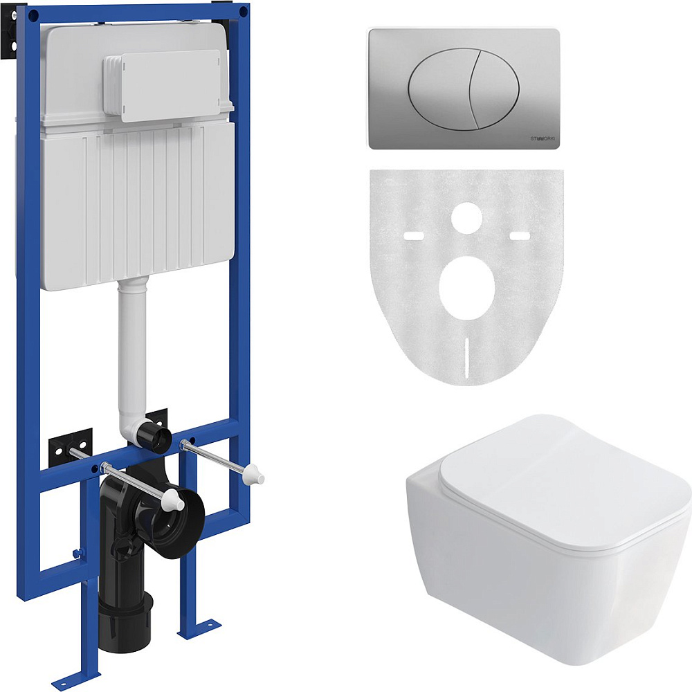Комплект 3 в 1 Унитаз подвесной STWORKI Монтре SETK3204-2616 + Инсталляция 510162 + Кнопка 230822 цвет глянцевый хром