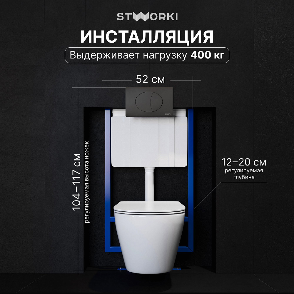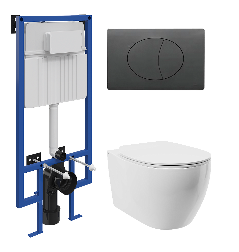 Комплект 3 в 1 Унитаз подвесной STWORKI Муле HDC510NWH + Инсталляция 510162 + Кнопка 230858 цвет матовый черный