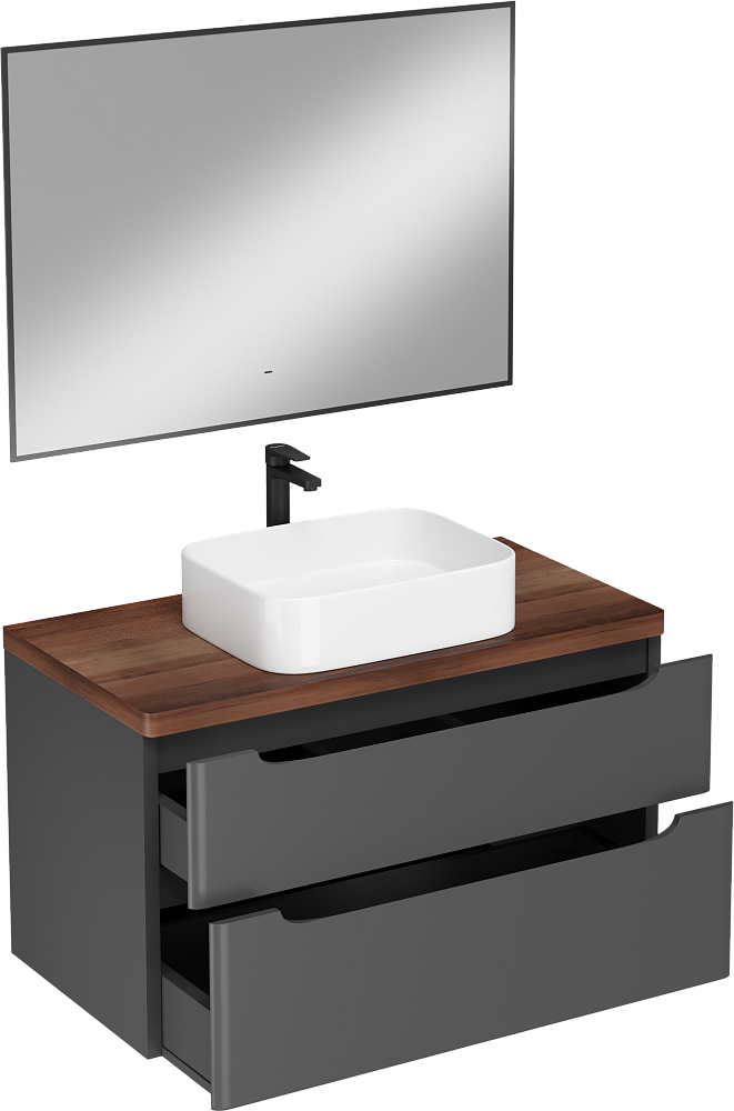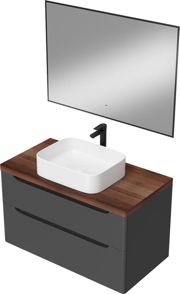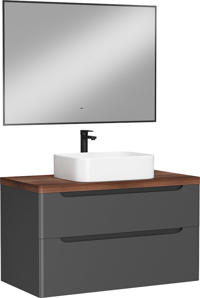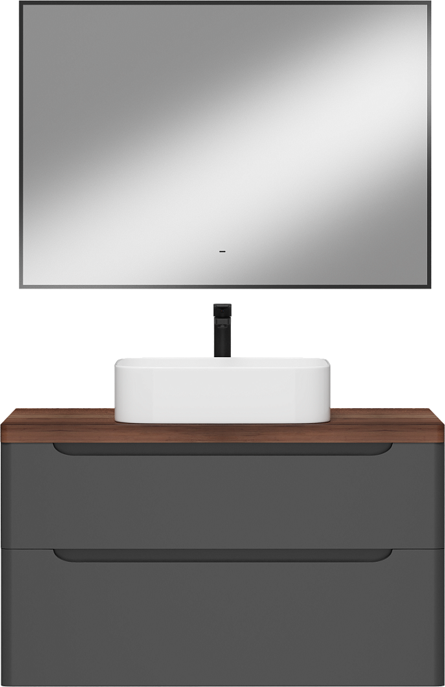 Мебель для ванной комнаты STWORKI Берген 100 серая с темной столешницей, раковина Ольборг S20410WH