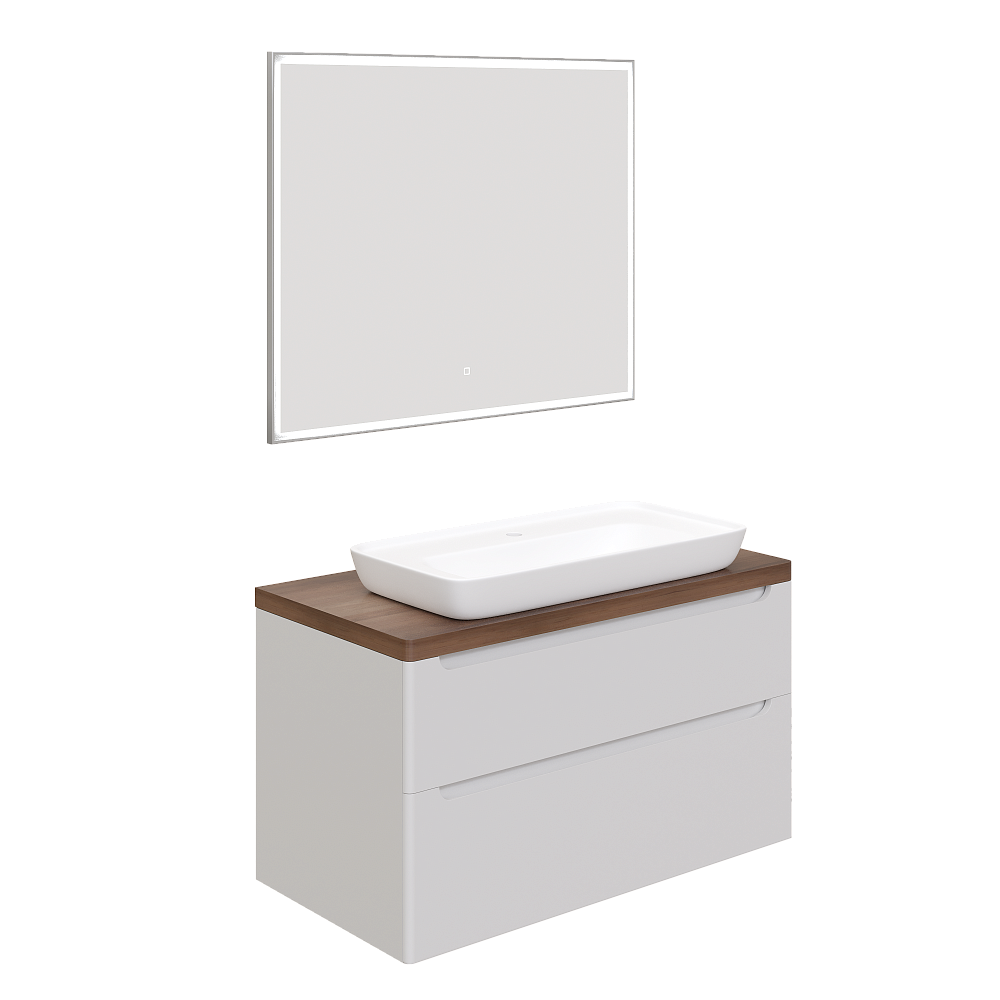 Мебель для ванной комнаты STWORKI Берген 100 белая с темной столешницей, с раковиной Углич 0117