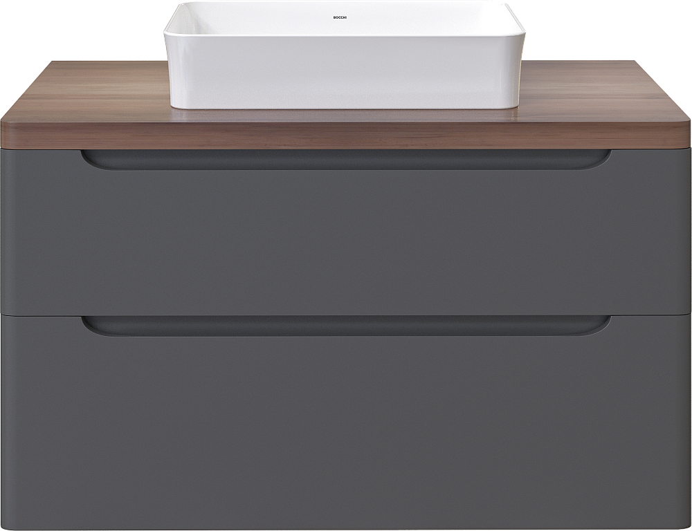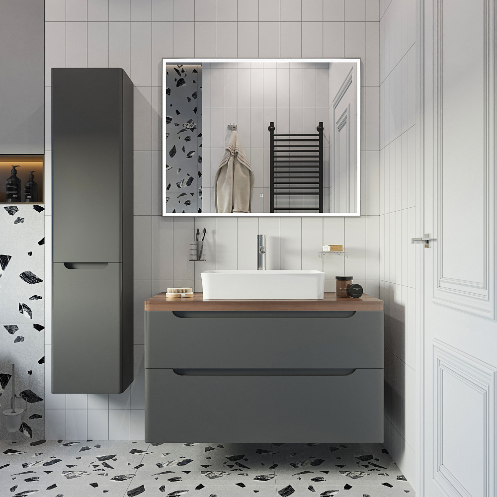 Мебель для ванной комнаты STWORKI Берген 100 серая с темной столешницей, раковина Bocchi Sottile 1476-001-0125
