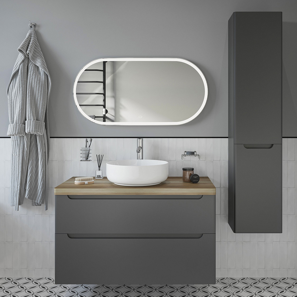 Мебель для ванной комнаты STWORKI Берген 100 серая со светлой столешницей, раковина Moon 1