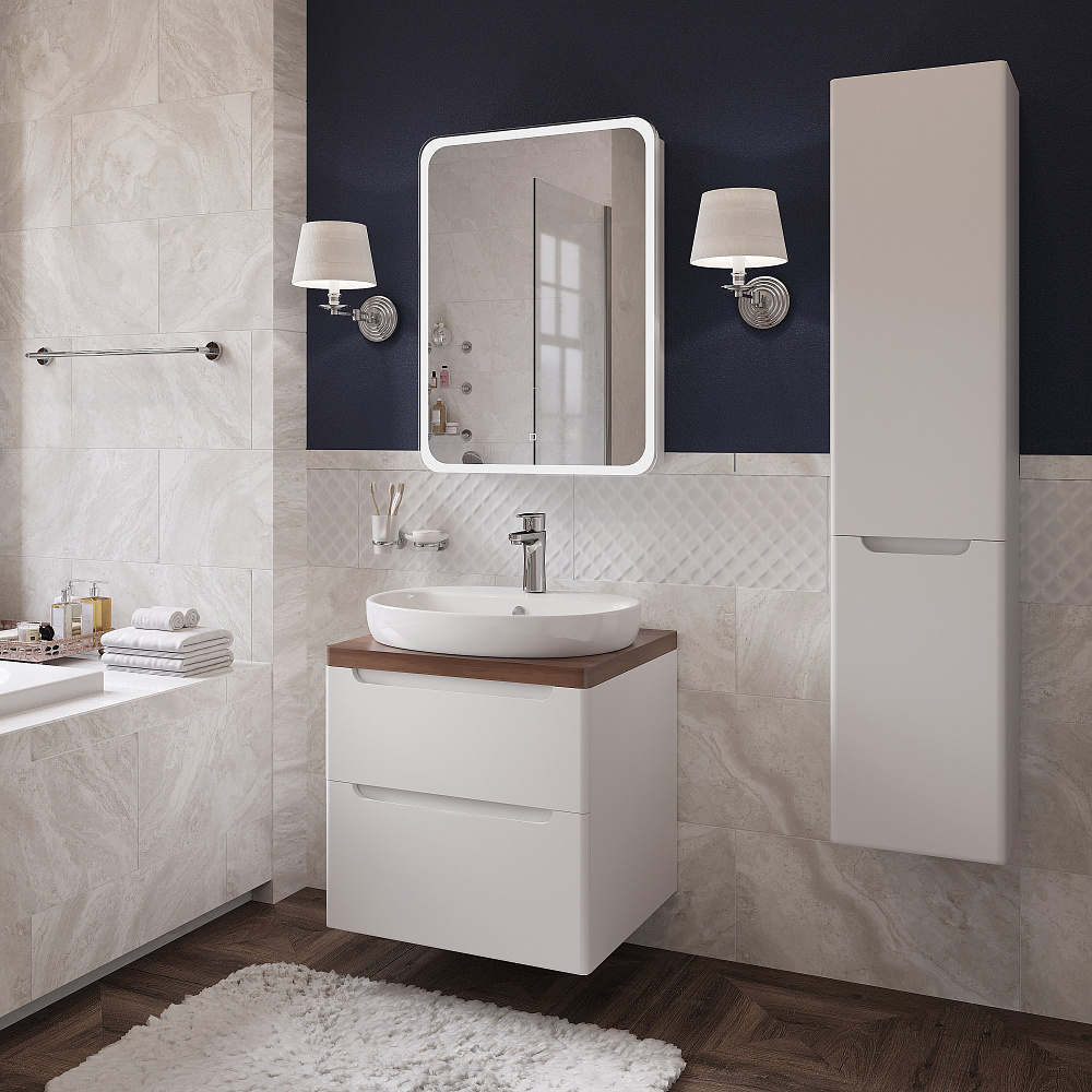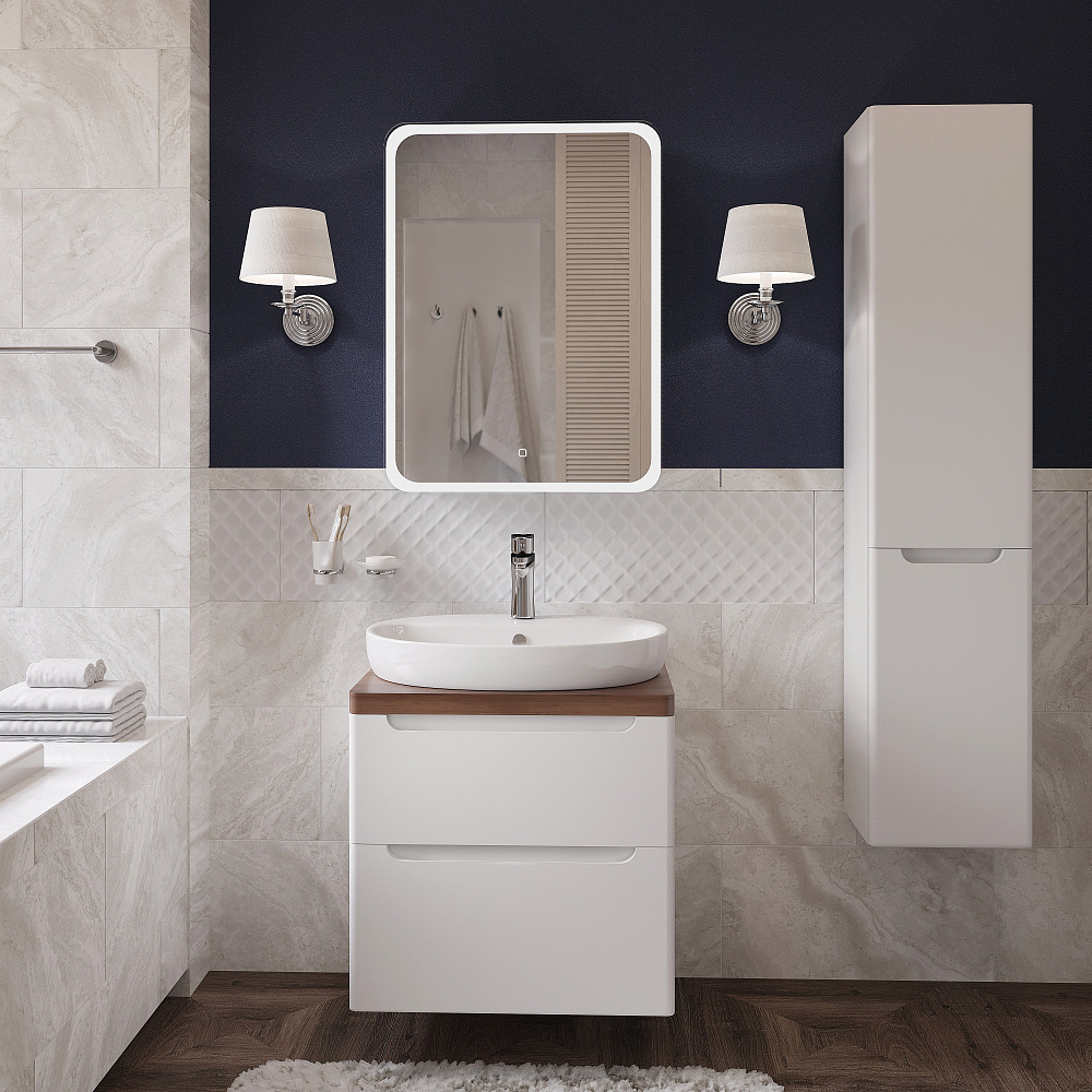 Мебель для ванной комнаты STWORKI Берген 80 белая с темной столешницей, раковина DIWO Самара 0116