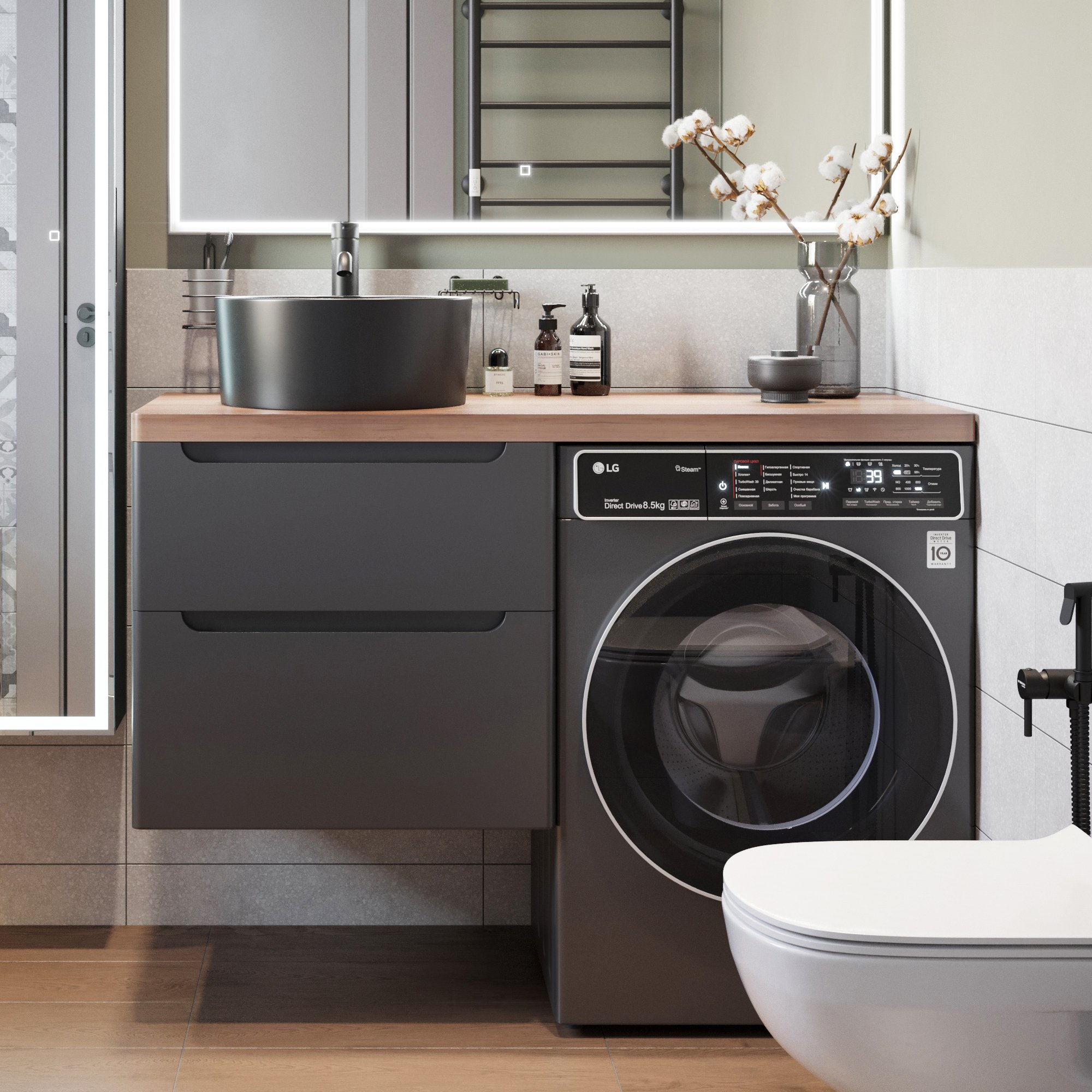 Мебель для ванной комнаты STWORKI Берген 80 белая с темной столешницей, раковина Moduo 50 Square