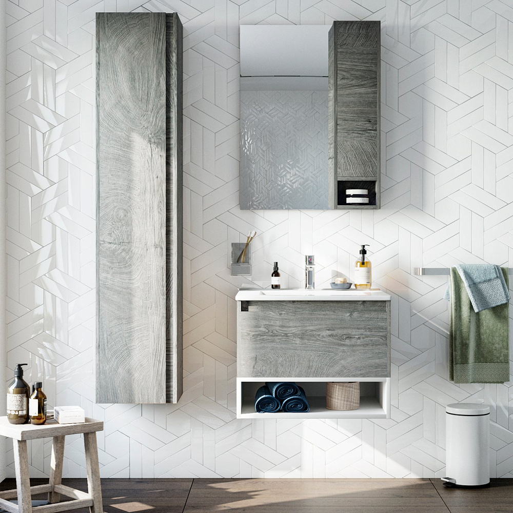 Мебель для ванной комнаты STWORKI Карлстад 60 дуб рошелье, с белой полкой, в стиле лофт, подвесная (комплект, гарнитур)