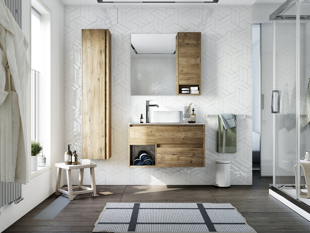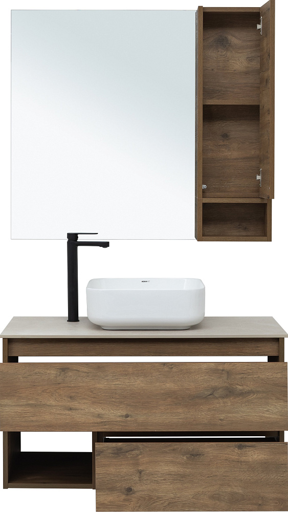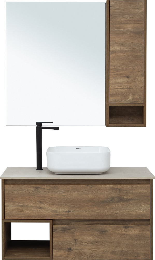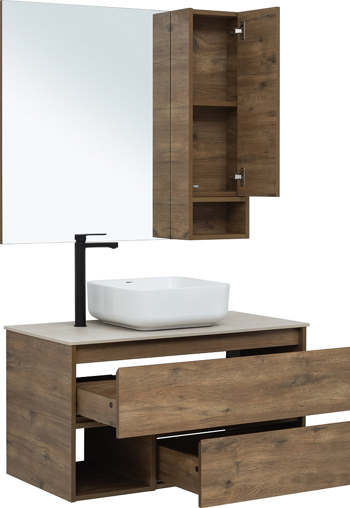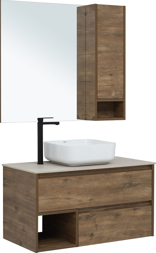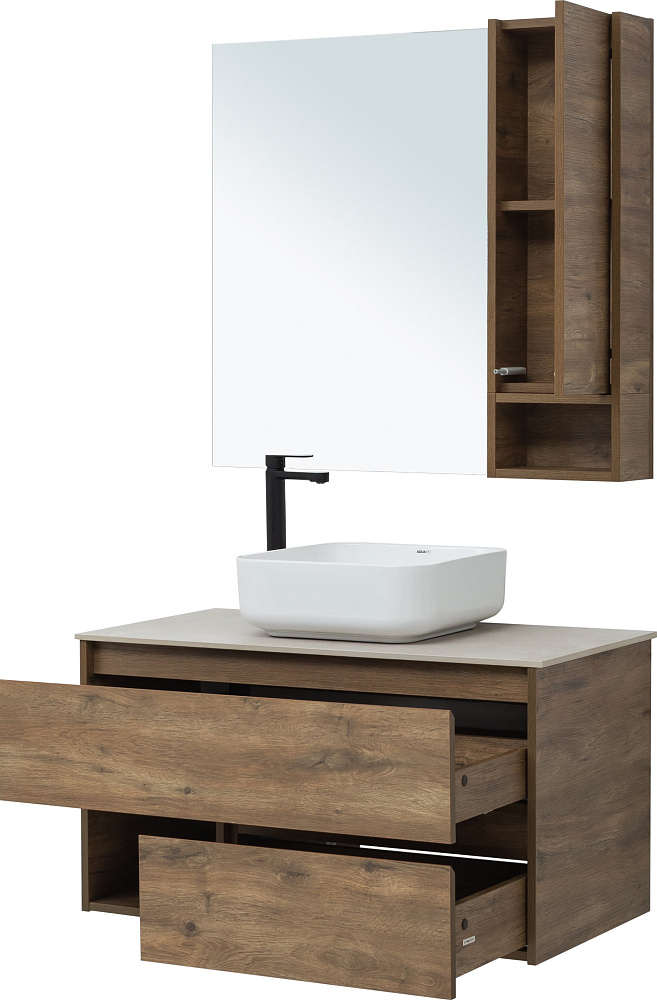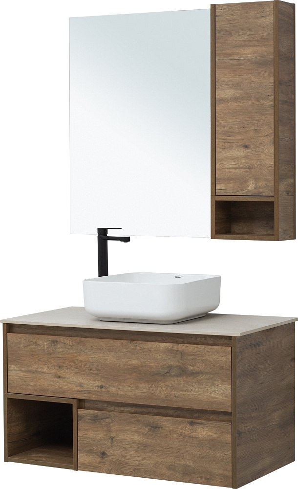 Мебель для ванной комнаты STWORKI Карлстад 90 дуб рустикальный, простоун беж, с отверстием для смесителя в столешнице