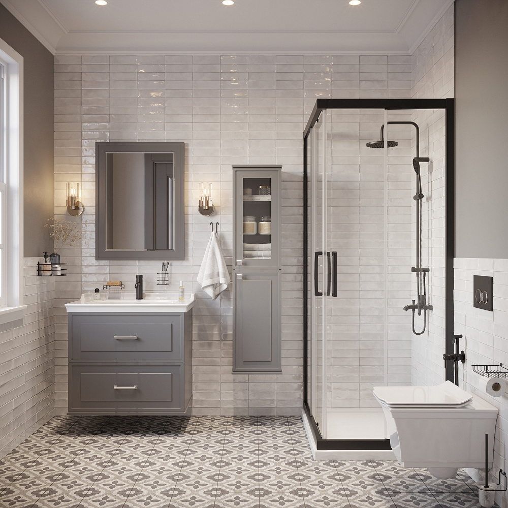 Мебель для ванной комнаты STWORKI Хадстен 80 cерая, в стиле прованс, подвесная, российская (гарнитур, комплект)
