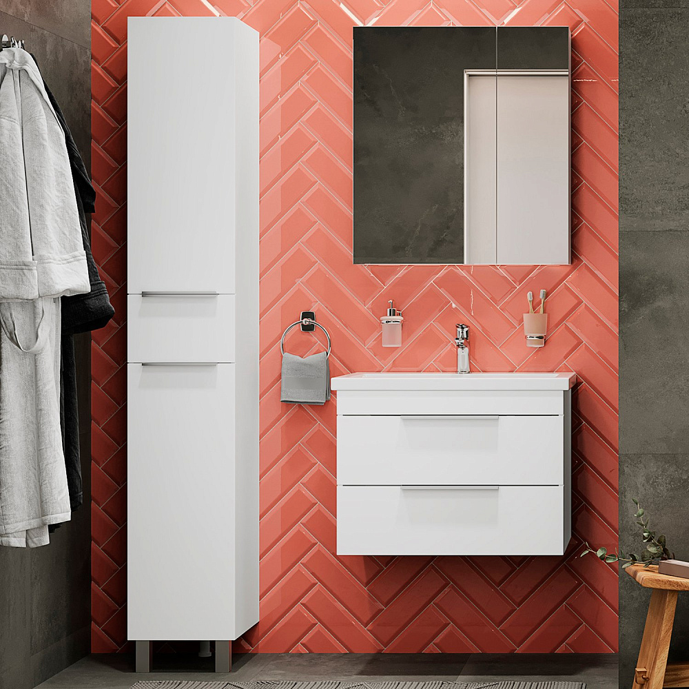 Мебель для ванной комнаты STWORKI Копенгаген 70 белая, подвесная, в современном стиле (комплект, гарнитур)