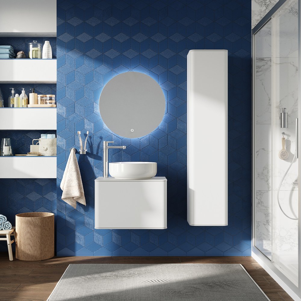 Мебель для ванной комнаты STWORKI Ноттвиль 60 белая, с отверстием под смеситель, подвесная, российская (гарнитур, мебель)