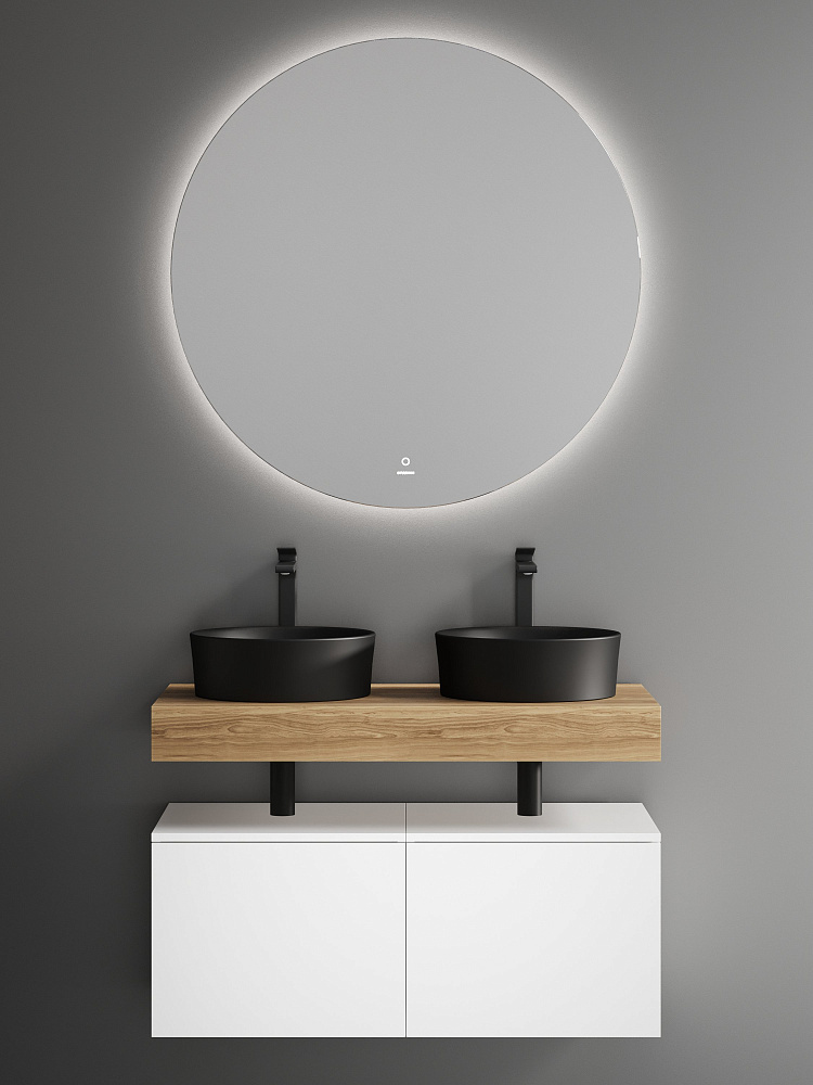 Мебель для ванной комнаты STWORKI Ольборг 100 столешница дуб французский, без отверстий, 2 тумбы 50 + 2 черные раковины